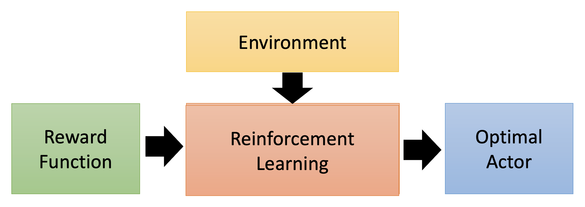 这是一般 RL 的流程图,可以看到它是基于环境和奖励来训练一个行动者的: