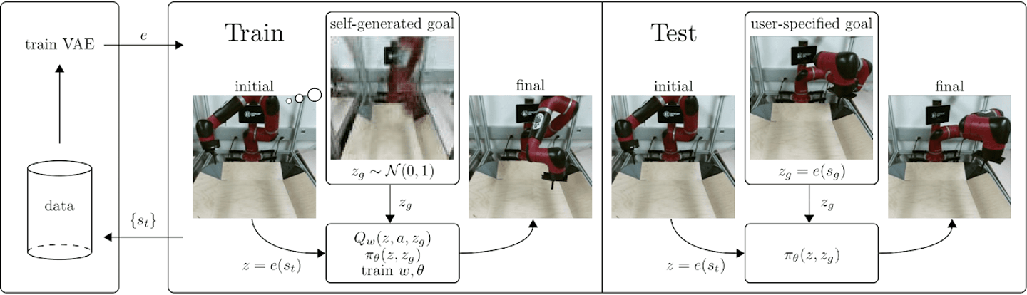 - Visual Reinforcement Learning with Imagined Goals, NIPS 2018
