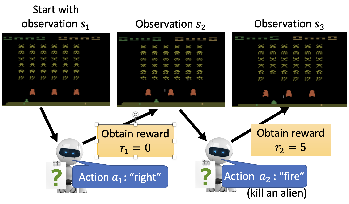 既然强化学习是机器学习的一种,那我们仍然可以在强化学习上套用机器学习的三个步骤(仍以太空侵略者为例