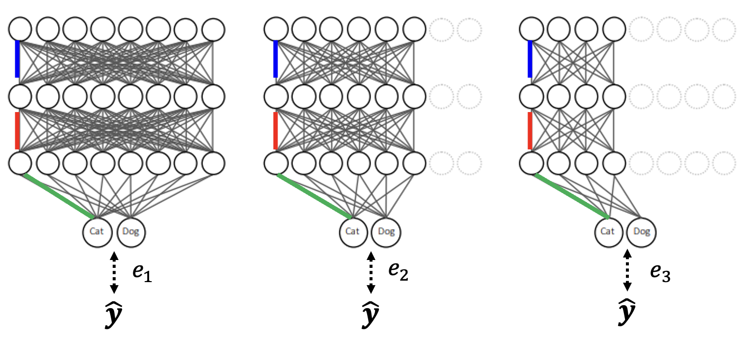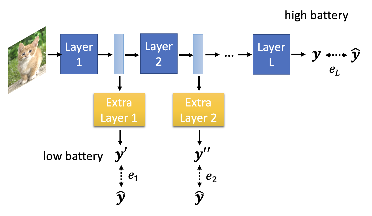 ) ,就让模型跑完所有层;如果计算资源不足,则就让模型跑到某一层就结束了,将这层的输出经过一个额外的层后就拿来作为最终结果 - 损失函数 \(L = e_1 + e_2 + \dots + e_L\),也就是说训练的时候要考虑每一层的损失