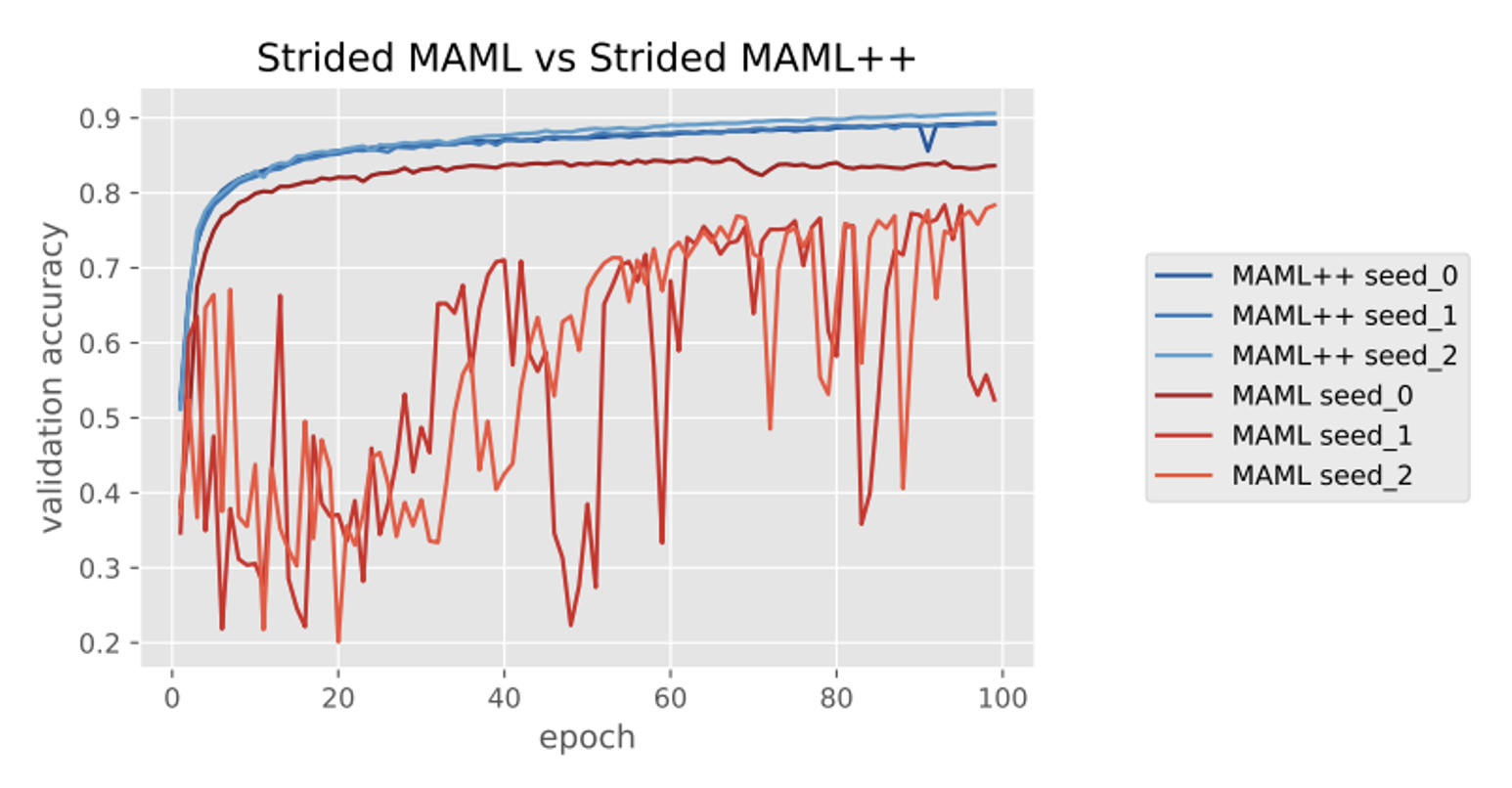 由于原版的 MAML 是很难训练的,所以有人提出了一个叫做 MAML++ 的改进版(论文标题为 How to train your MAML