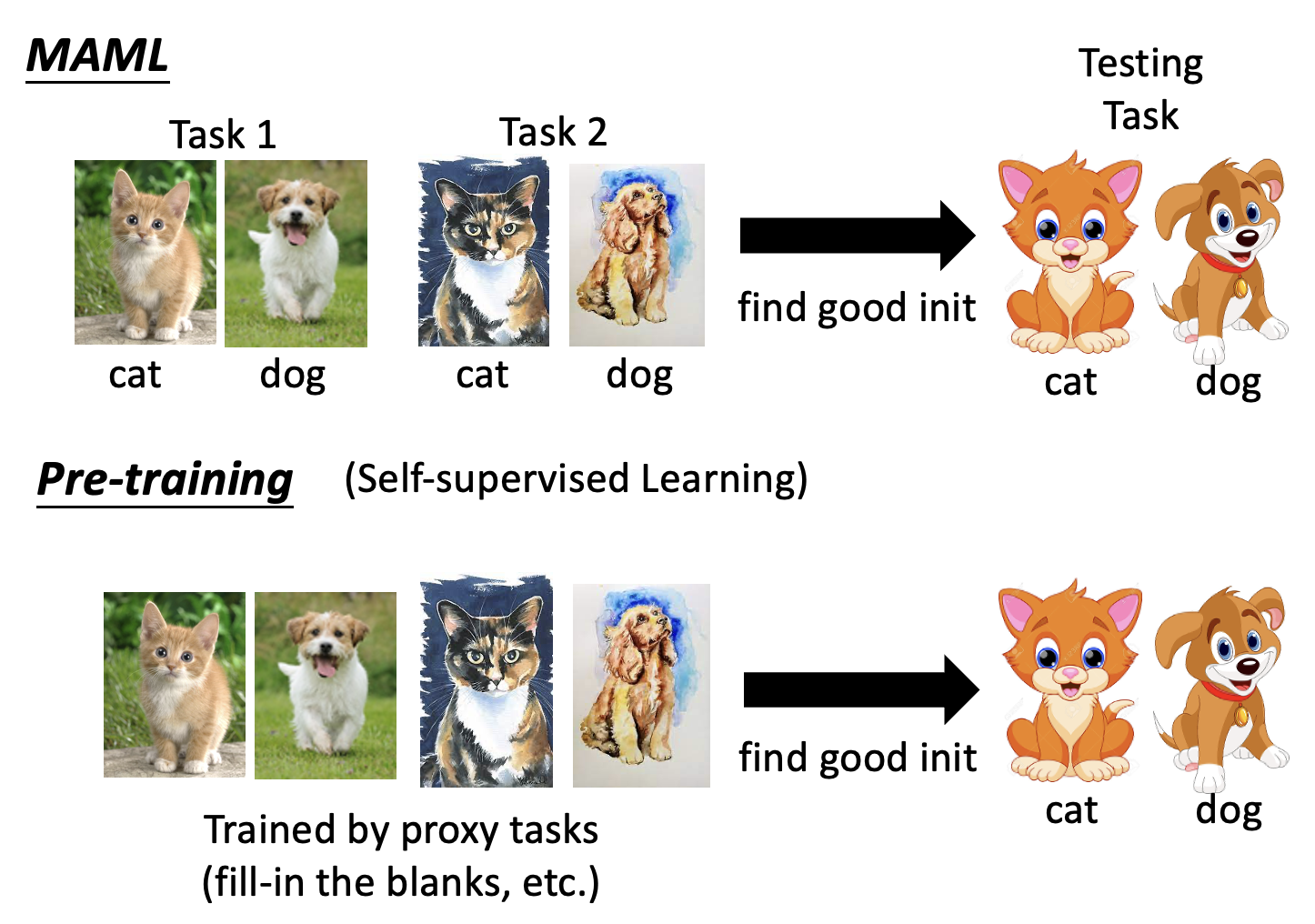 元学习和自监督学习的共同点在于它们都致力于寻找最好的初始化参数。