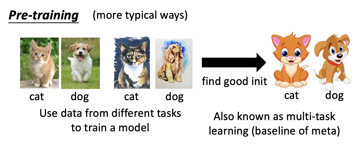 上图是以自监督学习为例的。对于更典型的情况,会用来自不同任务的数据来训练一个模型(所以这种方法称为多任务学习(multi-task learning)