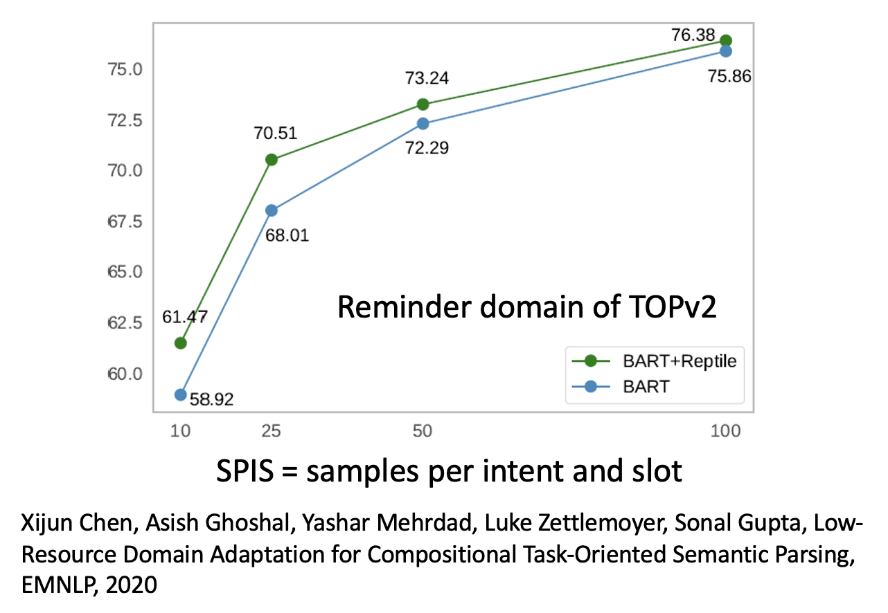 下图展示了某个相关研究的实验结果,其中绿线对应 BERT 变体 + MAML 变体的表现,可以看到它比只用 BERT 变体表现更好。