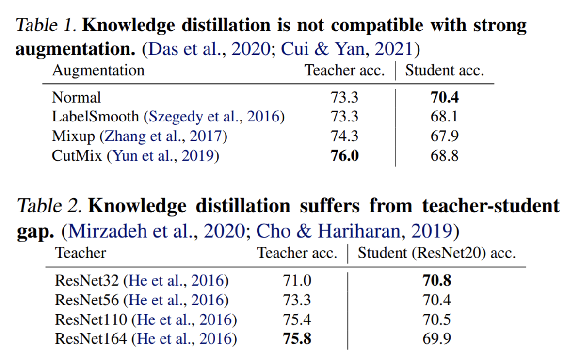 在网络压缩一讲介绍知识蒸馏的时候,我们忽略了一个问题:最好的老师网络“教”出来的学生网络一定是最好的吗?研究表明,答案是否定的。以表 1 为例,可以看到最好的老师是最后一个,但最好的学生是第 1 个老师教出来的。