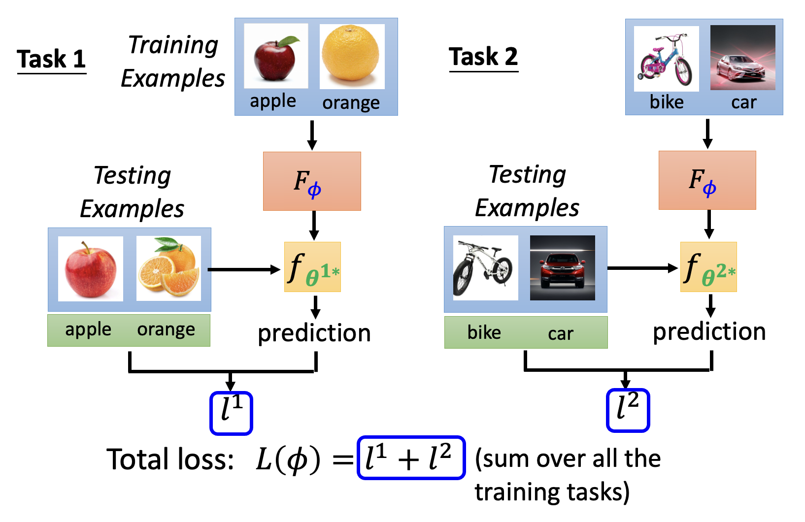 - 通过上述三个步骤,可以从多个训练任务中学出一个学习算法 \(F_{\varphi^*}\)
