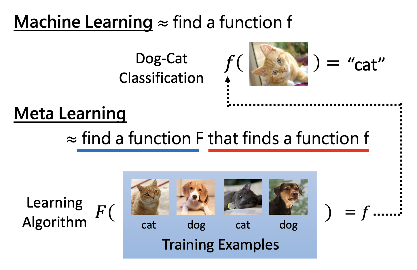- 元学习:寻找一个用于寻找一个函数 f 的函数 F