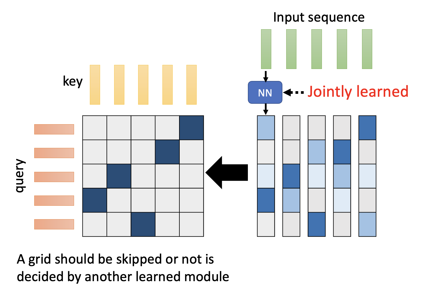 到目前为止,所有的技术都是基于人类知识来实现的,但实际上还可以通过机器学习,让模型自己决定哪些注意权重需要计算,哪些可以忽略。有一种叫做 Sinkhorn 排序网络(Sinkhorn sorting network) 的技术便能做到这一点。