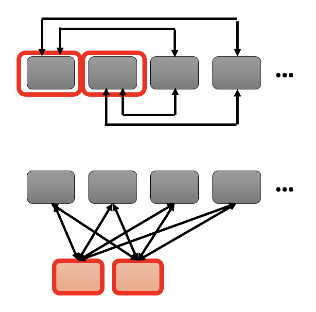 • 底下 4 个小矩形就是输入,最开始会有一个初始内存