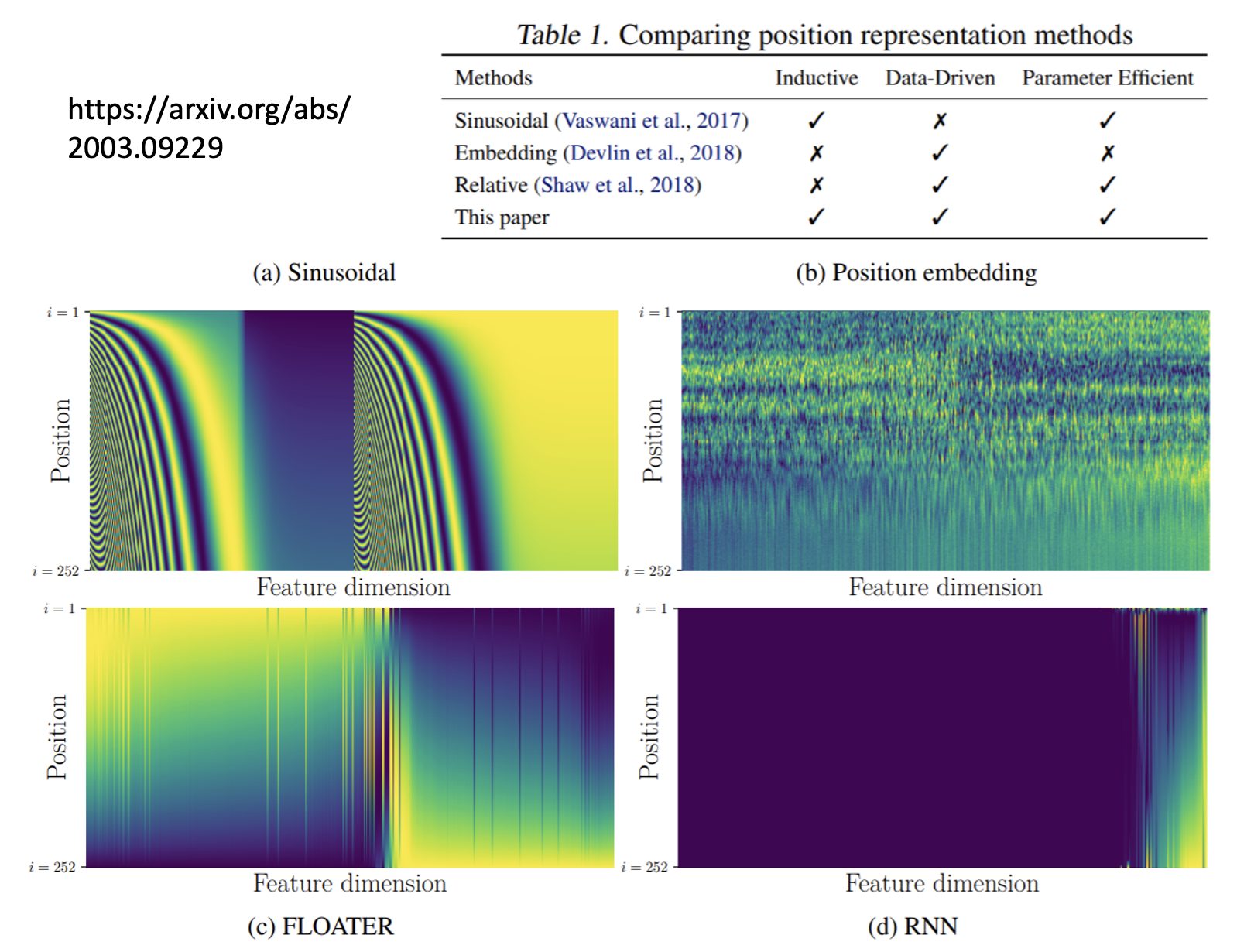 上面的位置向量是人为设定的(hand-crafted)——其实还可以通过数据训练出位置向量,下面就是一些典型的例子: