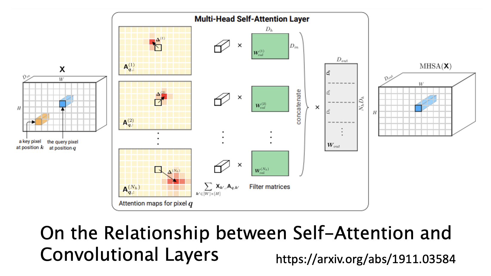 • CNN 是一种只考虑感受野范围内的自注意机制,即 CNN 是一种简化的自注意机制。