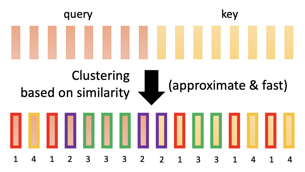 1. 基于查询和键的相似性分成多个集群 (cluster)