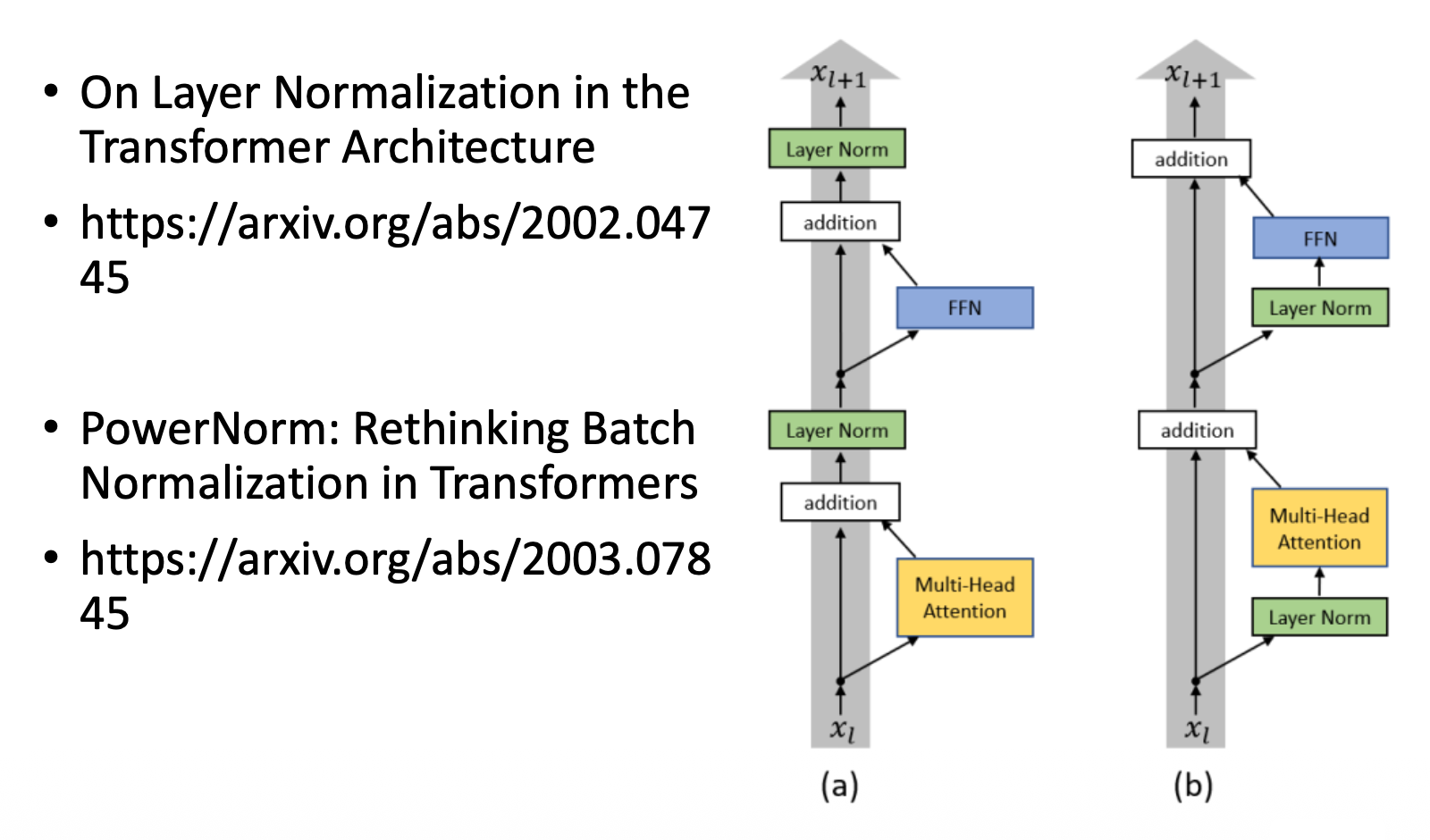原始的 Transformer 编码器中各模块的排列顺序不一定是最好的——有一些研究就是从这里出发做出一些改进: