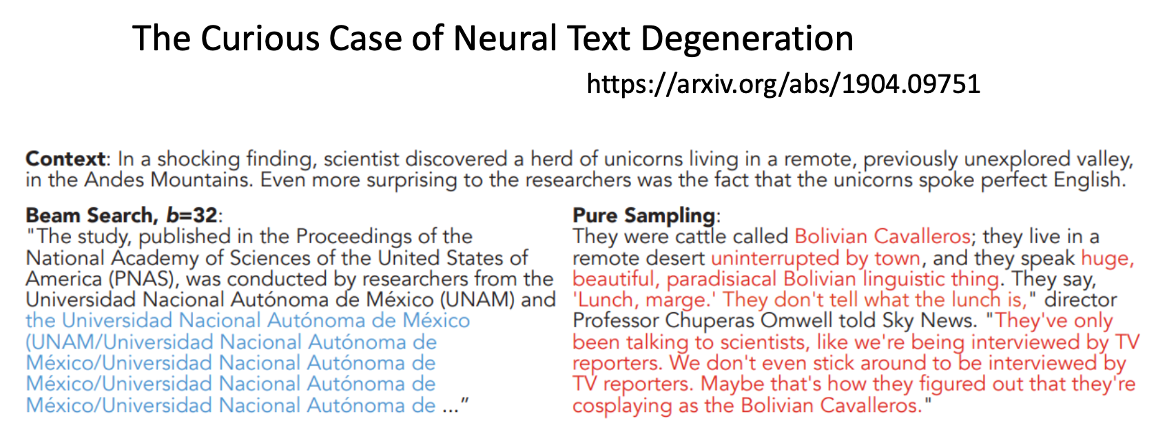 比如这篇 paper,两张图分别展示了用了束搜索和没用的结果。可以看到前者会陷入一个死循环(蓝色部分