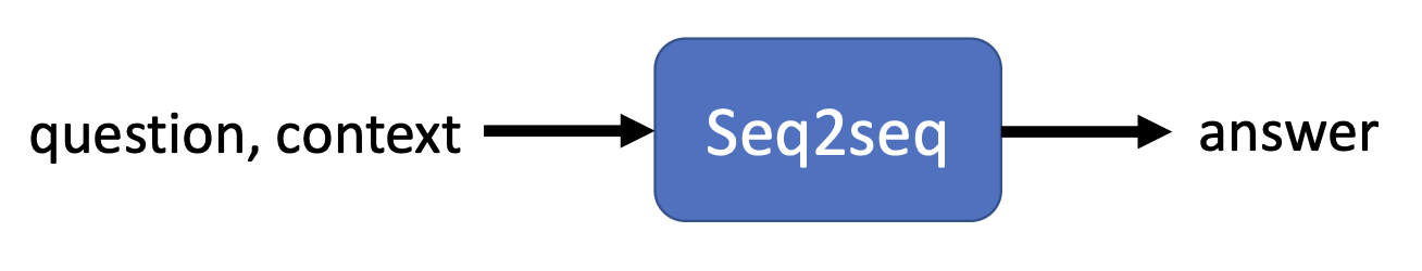 而 QA 这类问题就可以用 seq2seq 的模型来解决,相应的示意图如下所示: