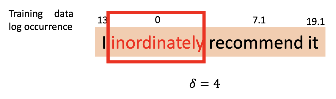 找到输入中的在训练数据内出现频次比预定阈值 \(\delta\) 小的词