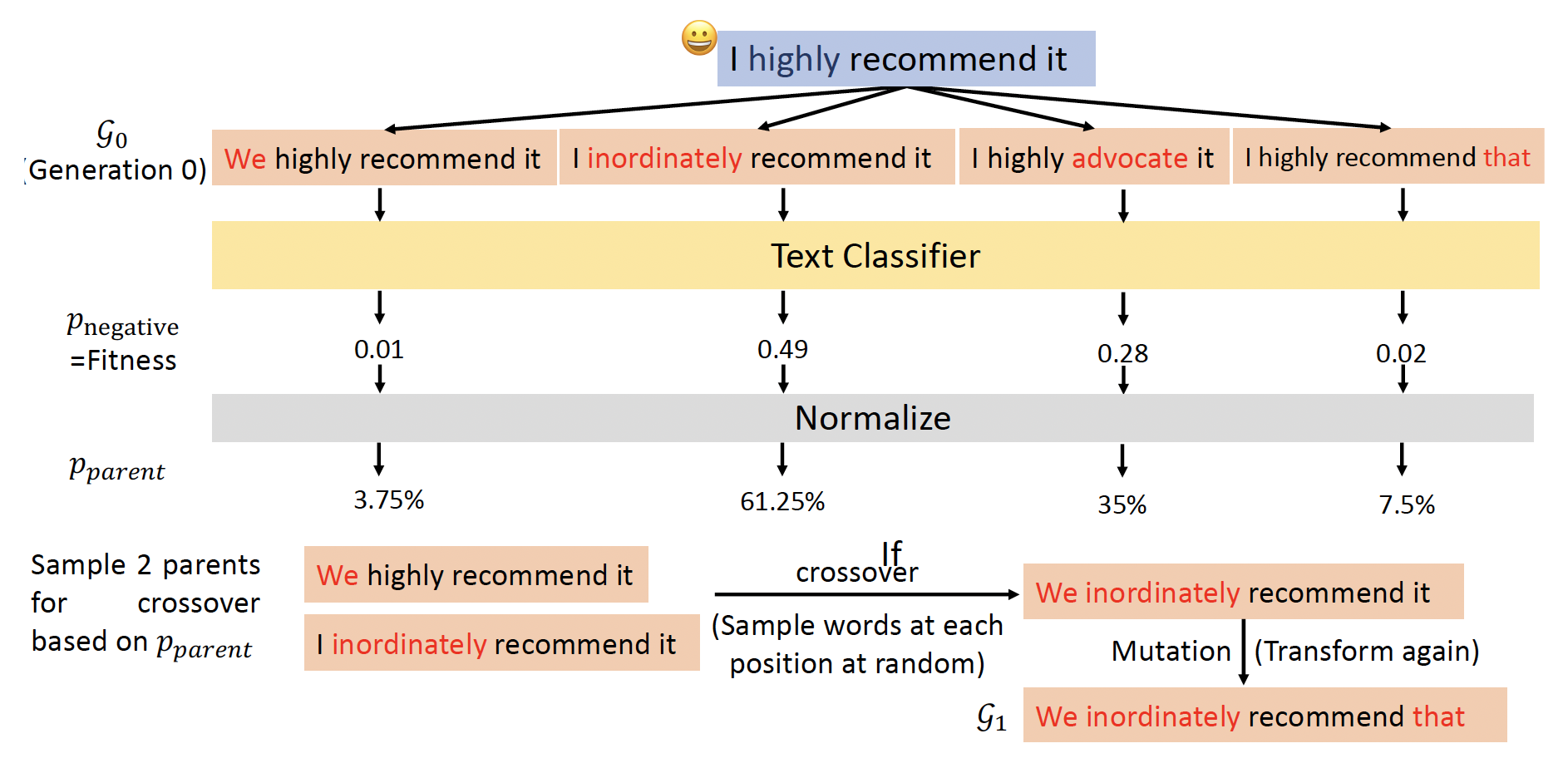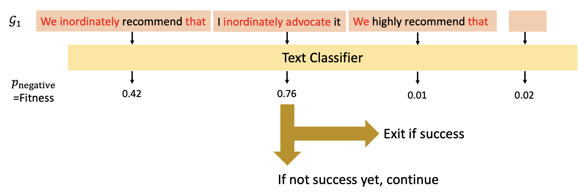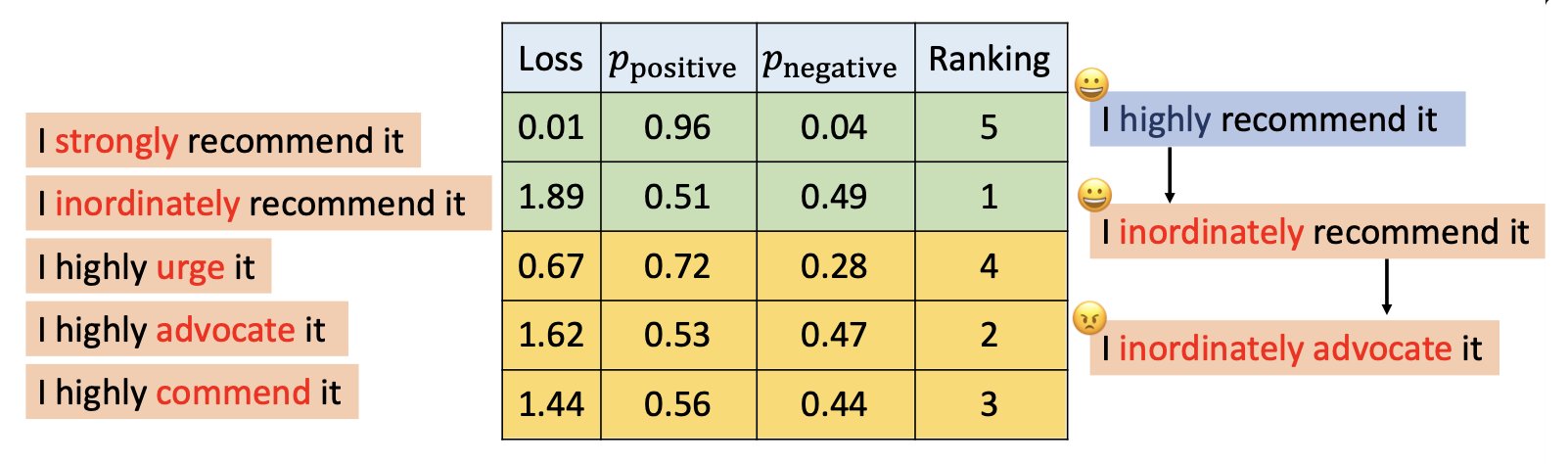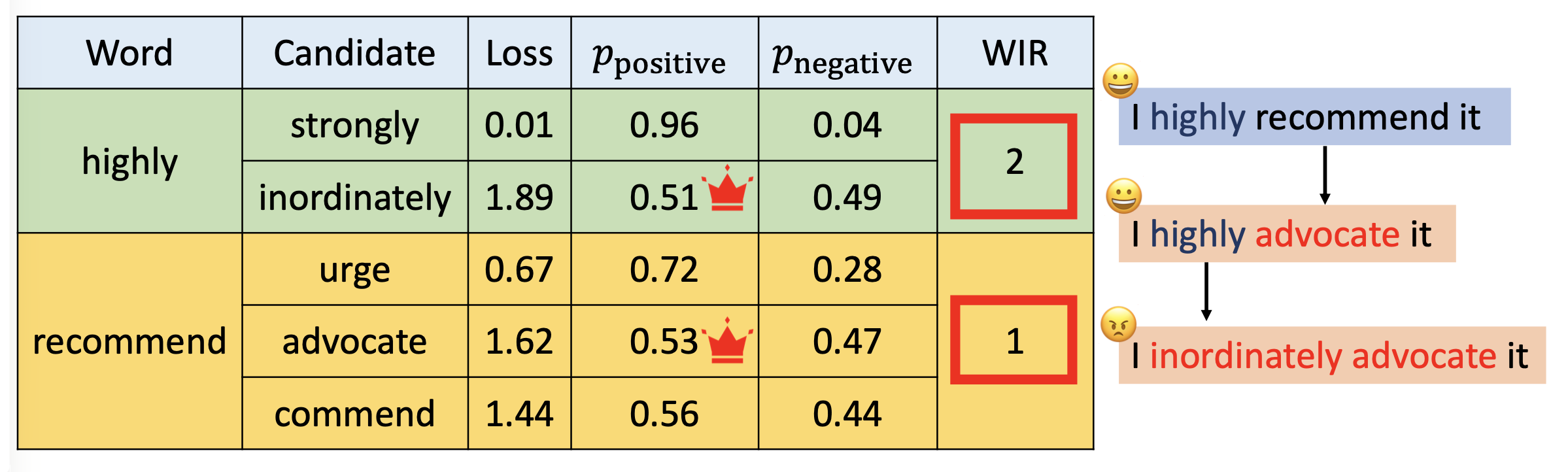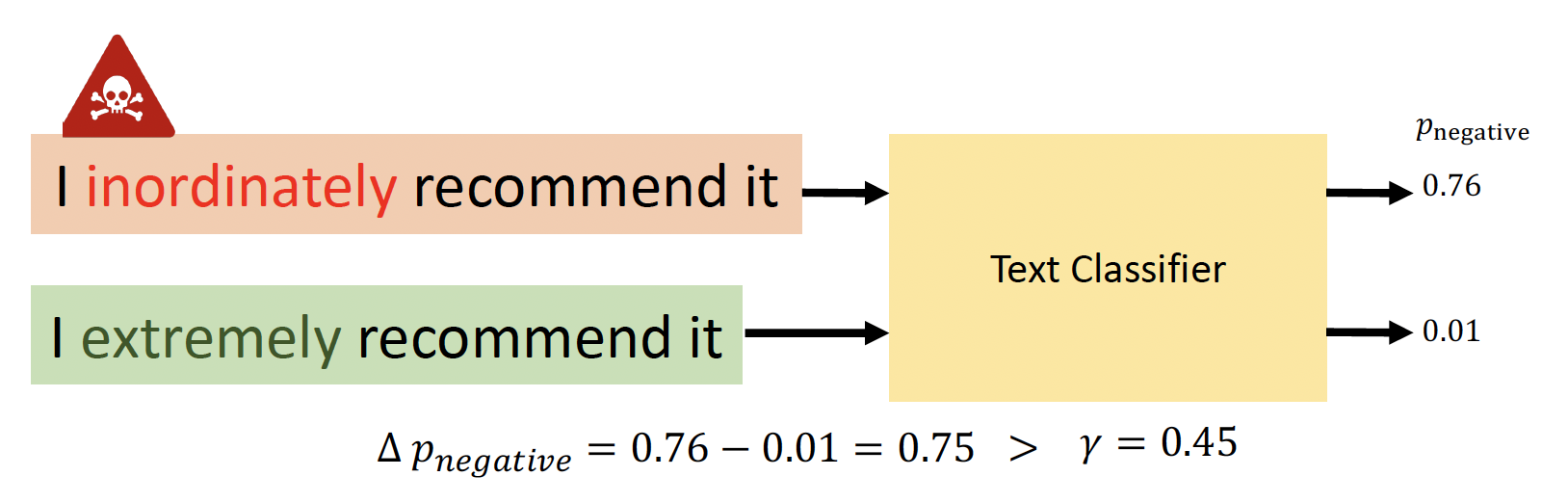 若在原始输入和交换输入之间的原始预测类的概率差大于预定阈值 \(\gamma\),将输入作为对抗样例翻转
