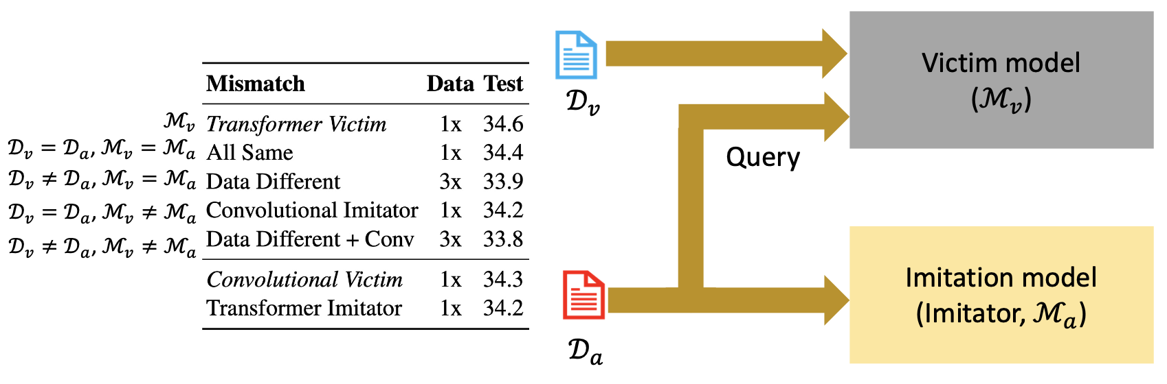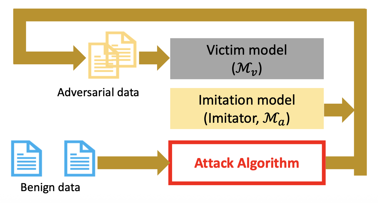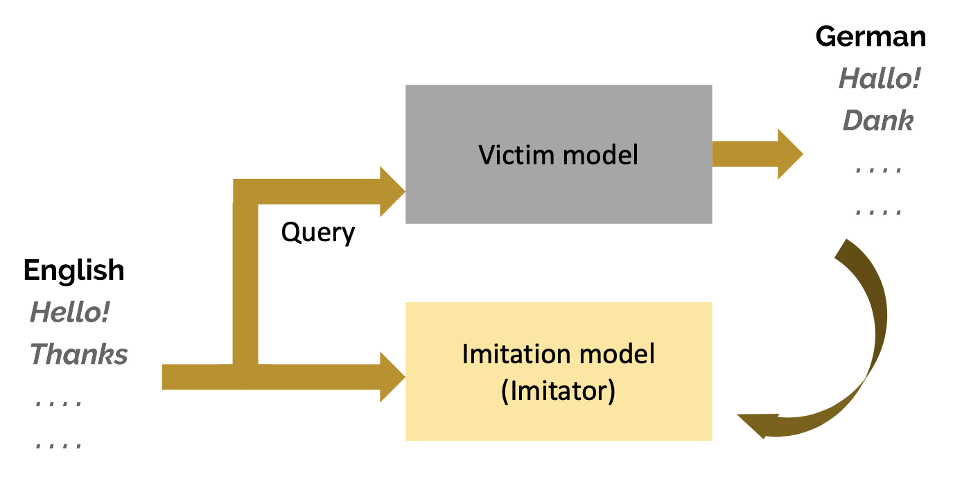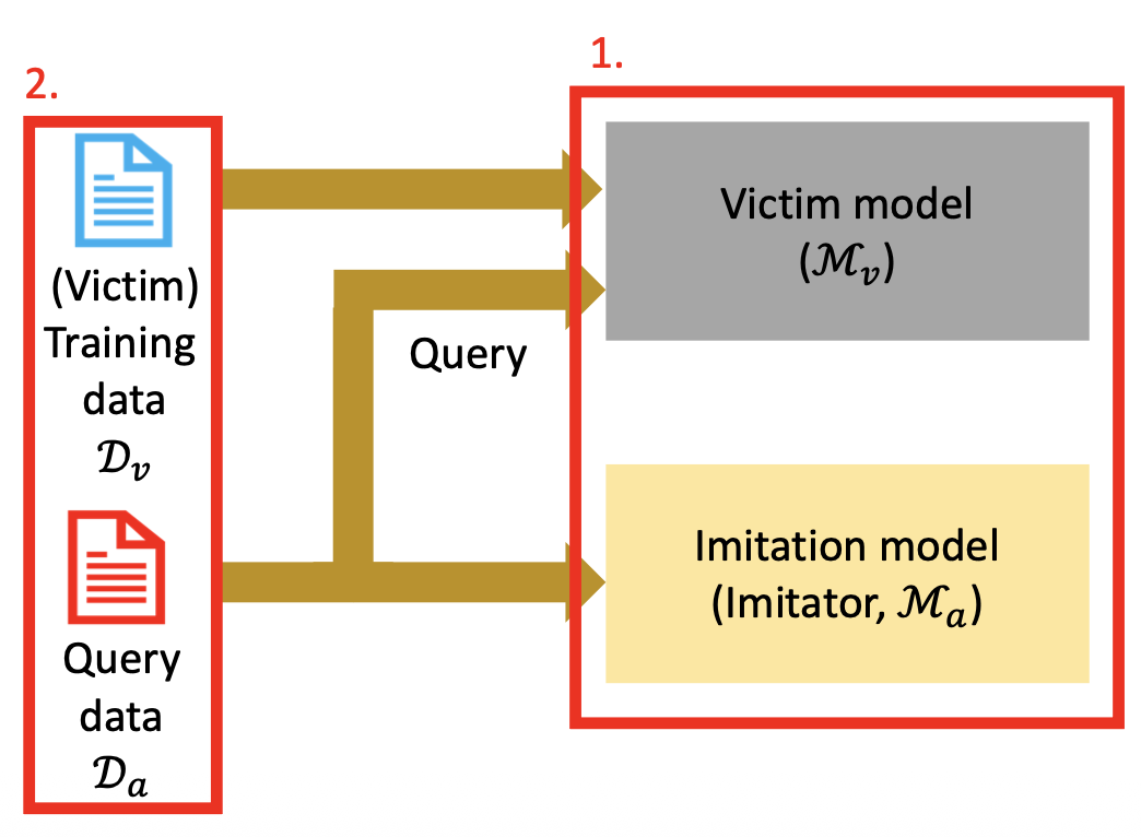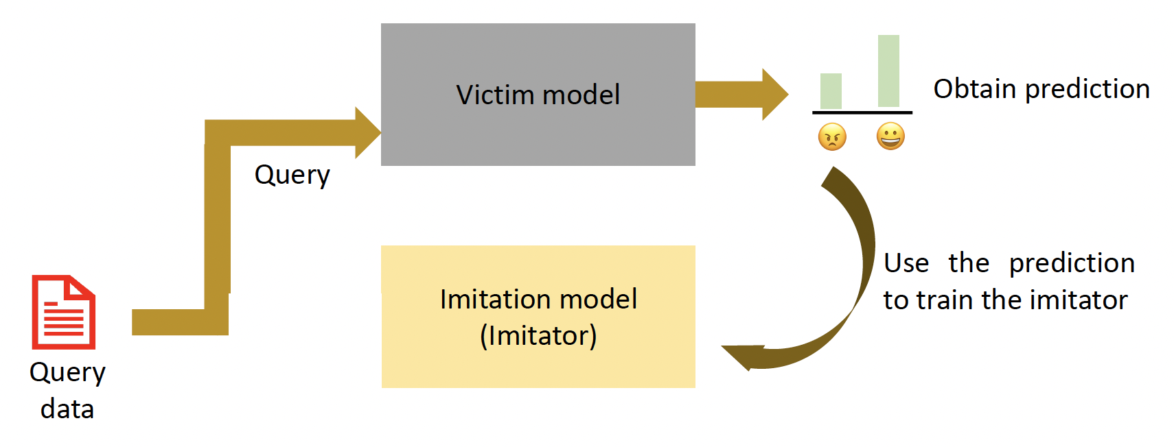 模仿攻击(imitation attack) 通过查询训练后的模型实现“窃取”。