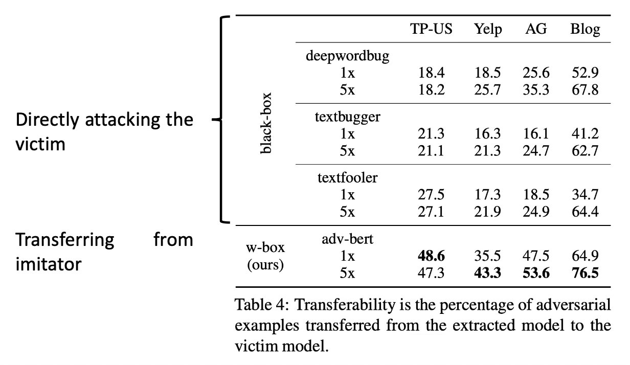 训练完模仿模型后,我们对模仿模型进行(白箱)攻击,得到对抗样例,然后用这些样例攻击受害者模型。