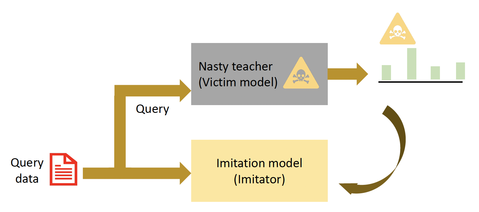 核心思想:训练一个坏 (nasty)“老师”模型(即模仿攻击中的受害者模型