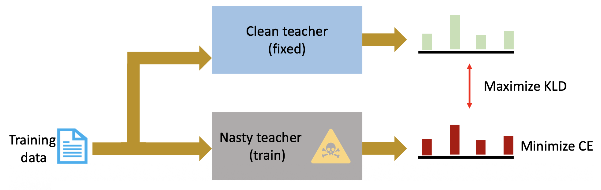 - 最大化好老师和坏老师之间的 KLD(KL- 发散 (divergence))