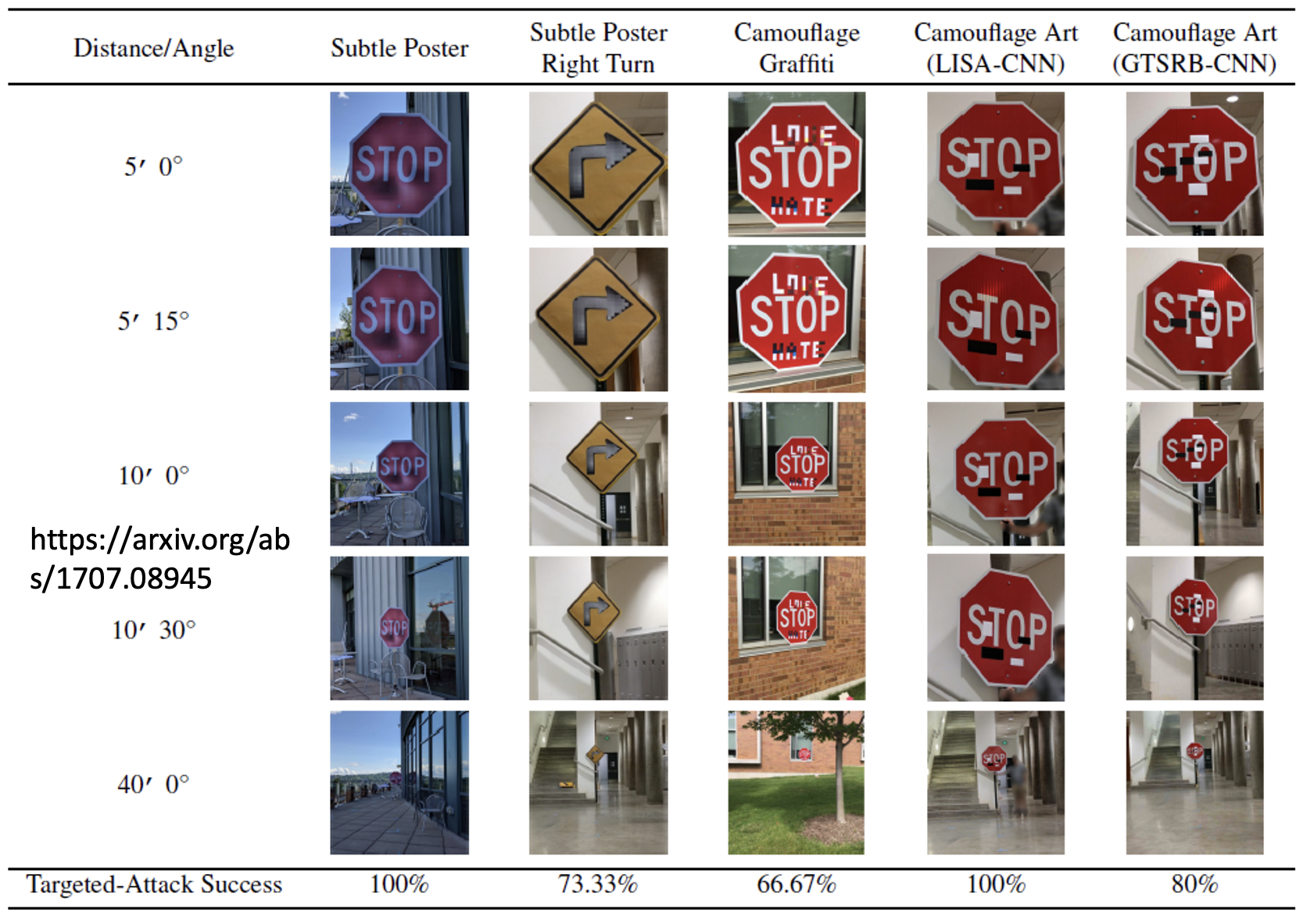 一种比较朴素的攻击手段是向标志牌贴一些贴纸,就能让模型分类失败。
