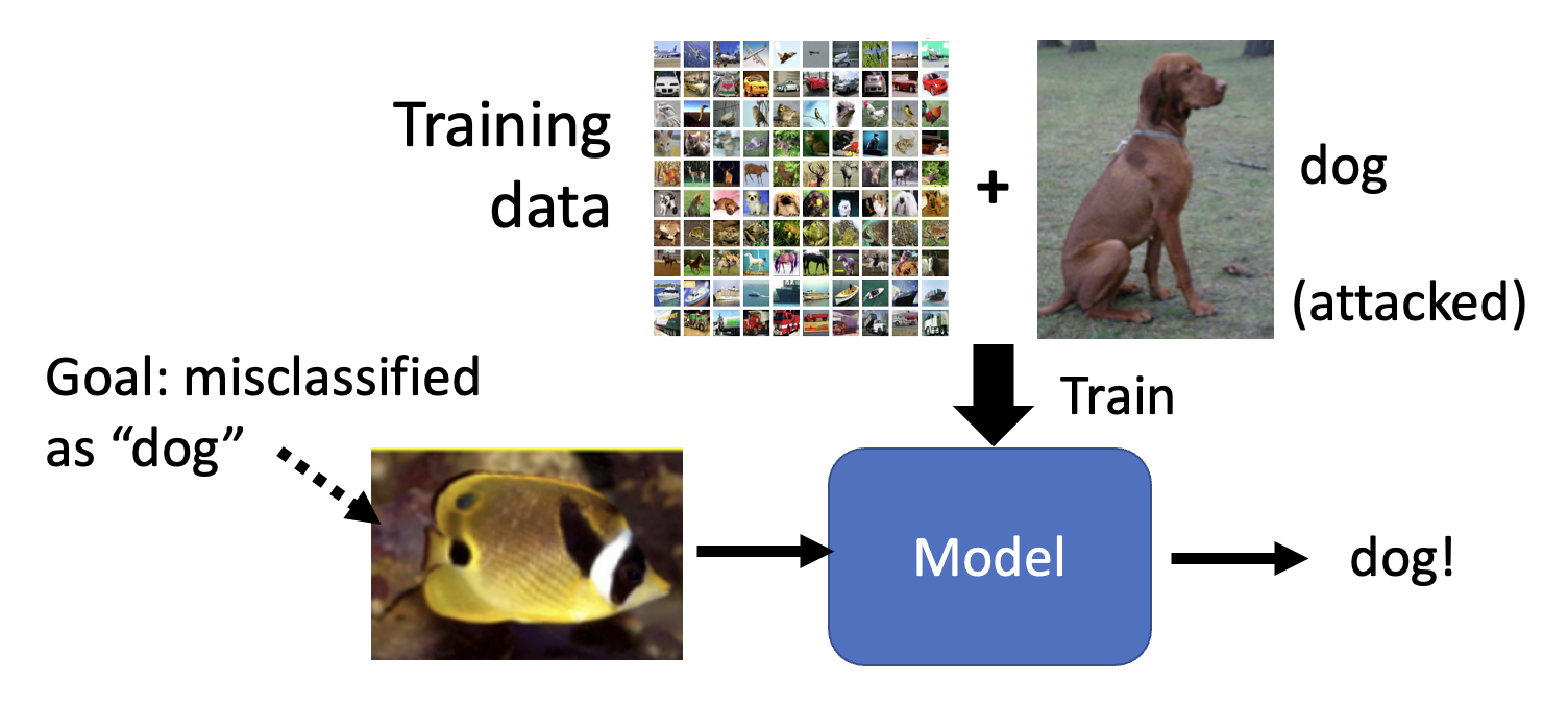 假设我们能够操控训练数据集,那么就可以实施数据投毒(data poisoning) 了,具体步骤为: