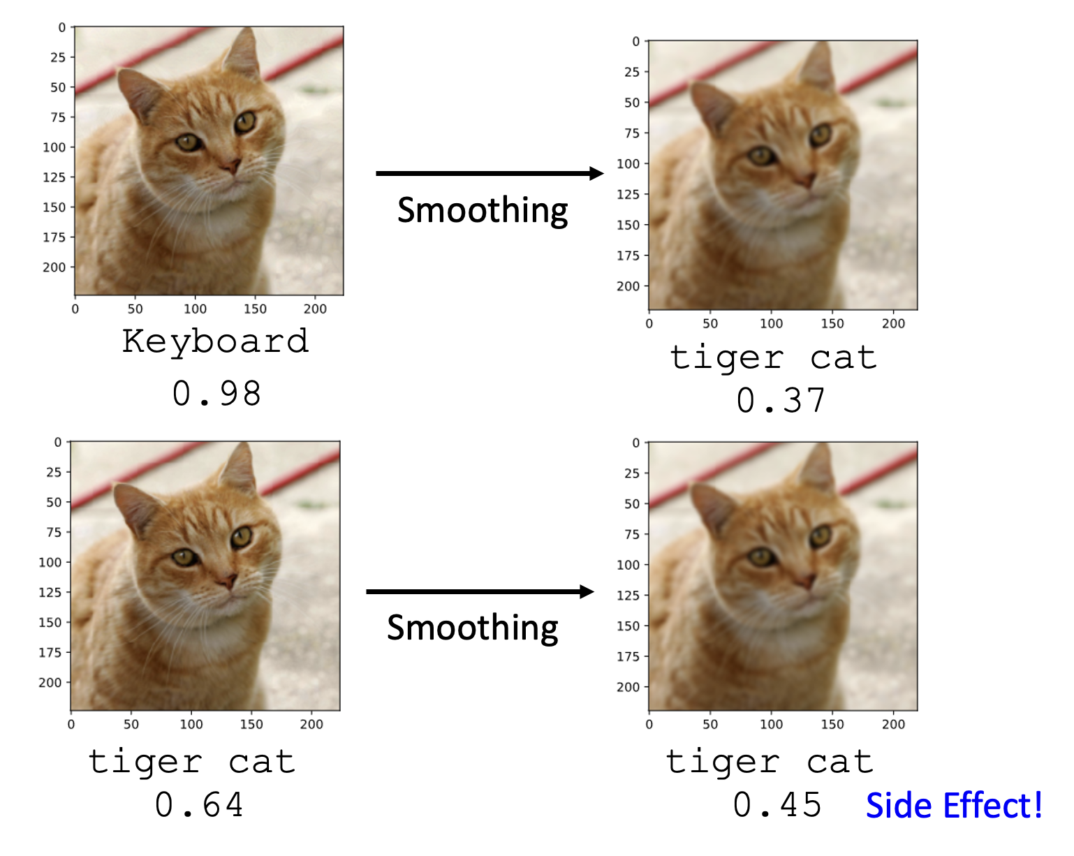 不过这样做会带来副作用:对于原本无害的图像,分类器打的分数会变低,或者说它就不像以前那样“自信”了。