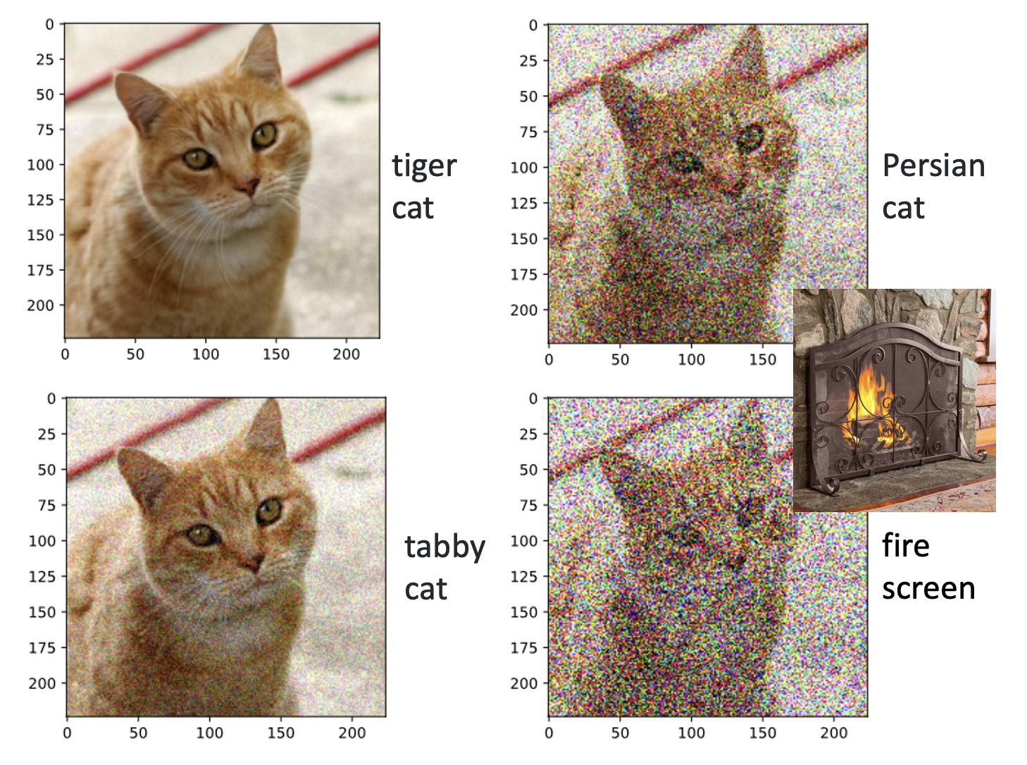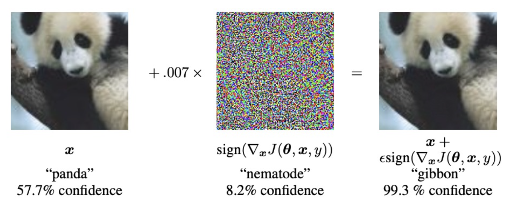 规避攻击(evasion attacks) 是最常见的攻击方式之一。在 CV 中,它的做法就是向图像添加人眼无法察觉的噪音,但能够改变模型对图像的预测。