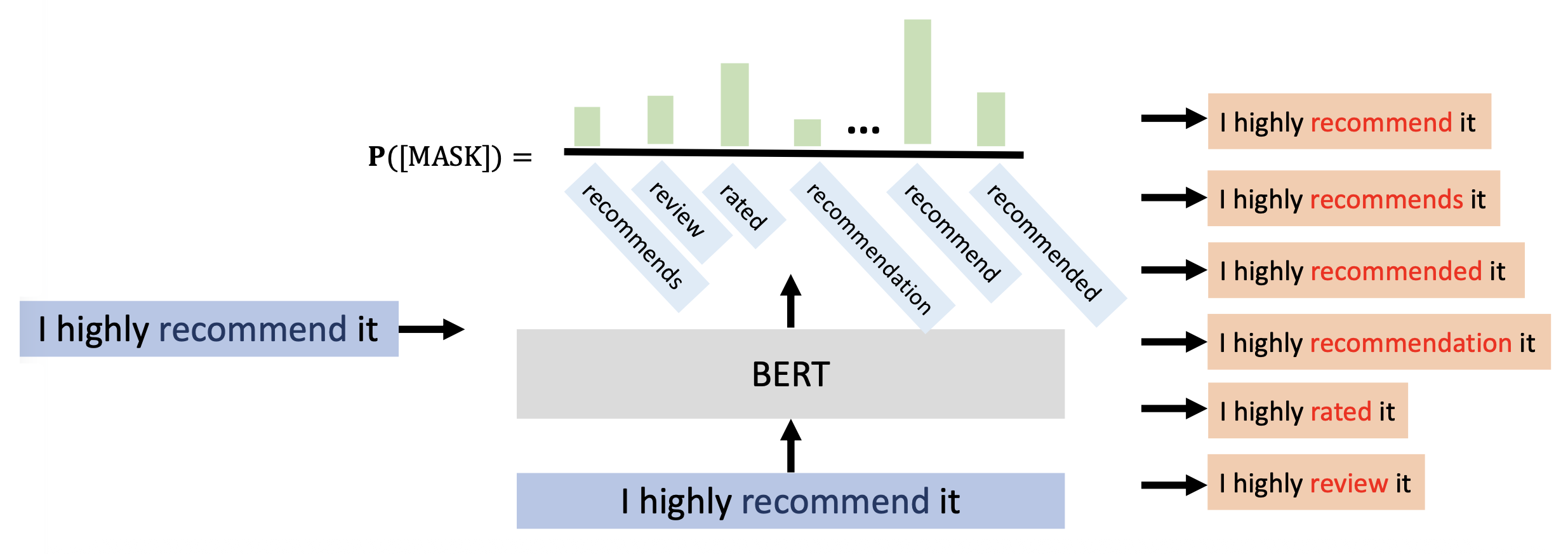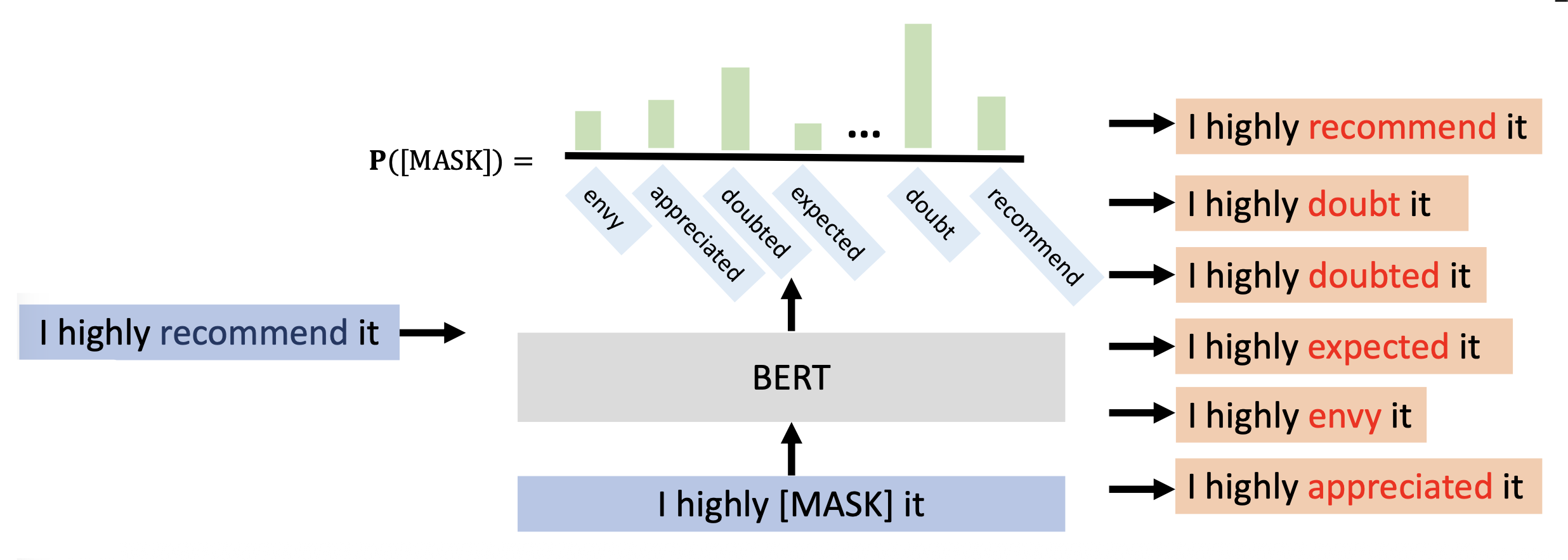 - 对于带触发器的输入,它们的 MLM 预测目标是词汇表中的随机词汇
