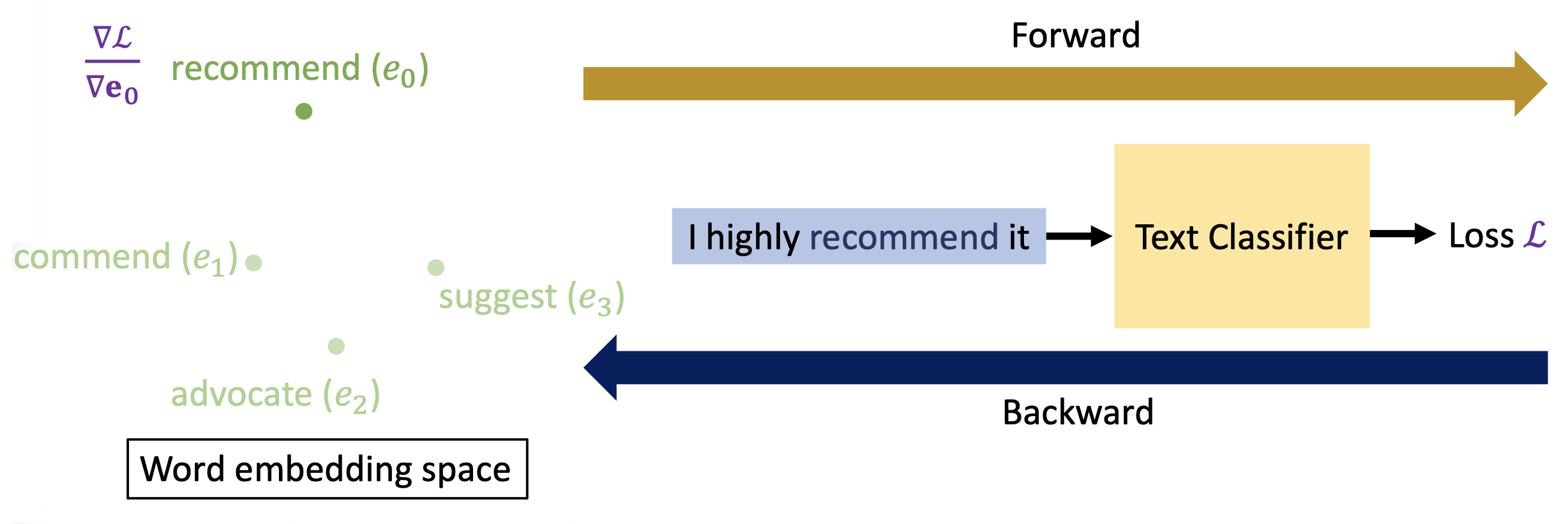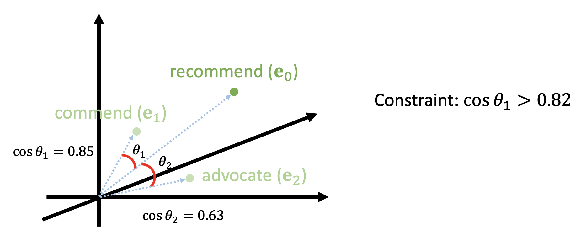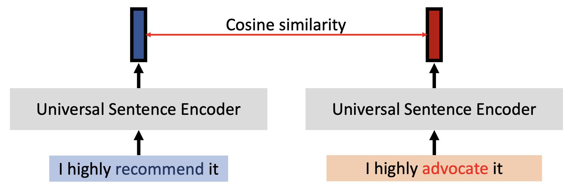 - 相似度 (similarity):\(L_{\text{sem}} = \cos \left(\dfrac{1}{n} \sum\limits_{i=0}^n \text{emb}(x_i), \dfrac{1}{n} \sum\limits_{i=0}^n \text{emb}(x_i^*)\right)\)