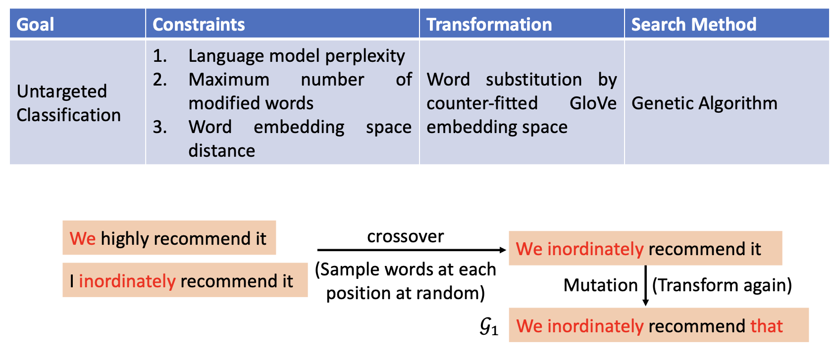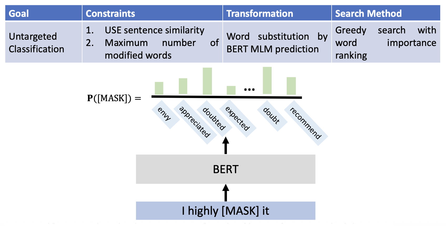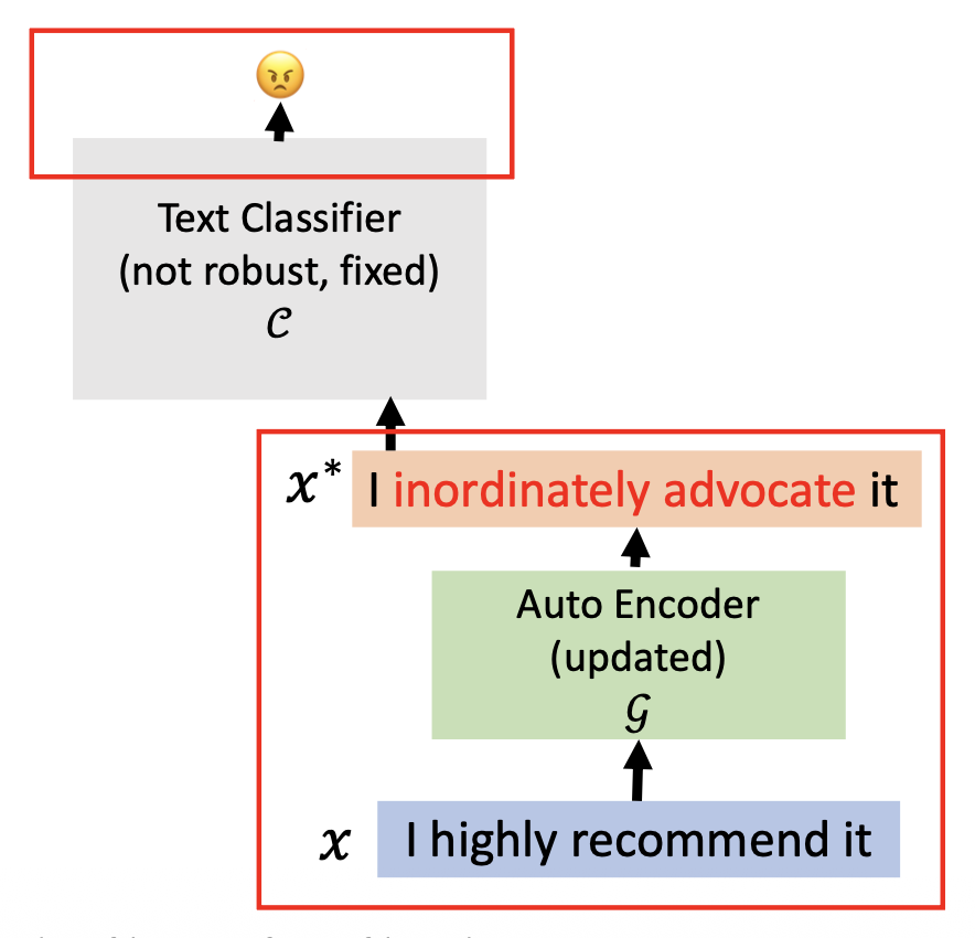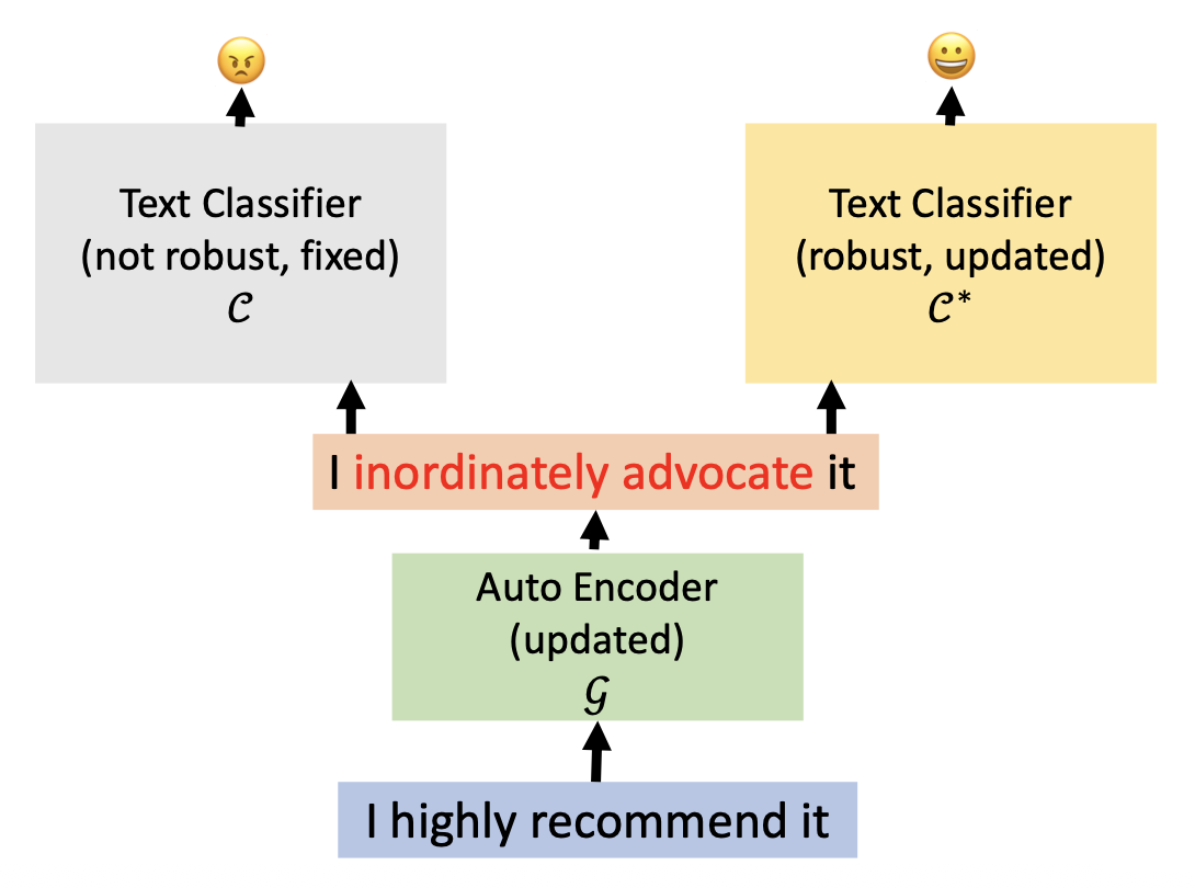 对抗数据增强(adversarial data augmentation):使用一个训练过的(但不够鲁棒的)文本分类器来预生成对抗样例,然后将它们添加到训练数据集中来训练一个新的文本分类器