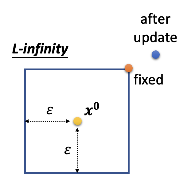 - \(\eta\) 不一定是 \(\varepsilon\),所以更新后的输入可能会离开边界,若发生这种情况的话需要像梯度下降法那样固定这个输入