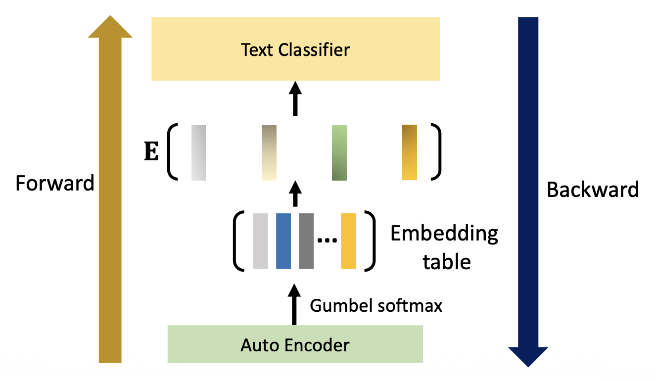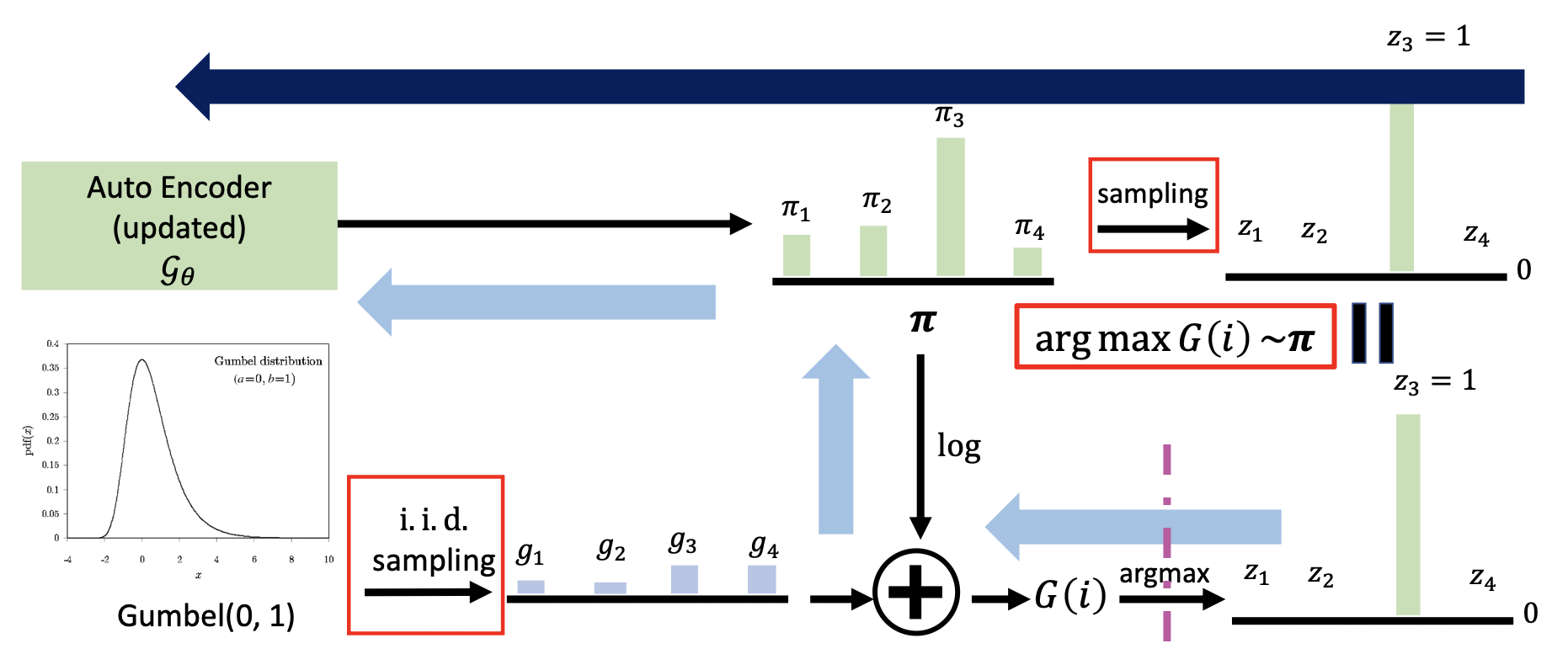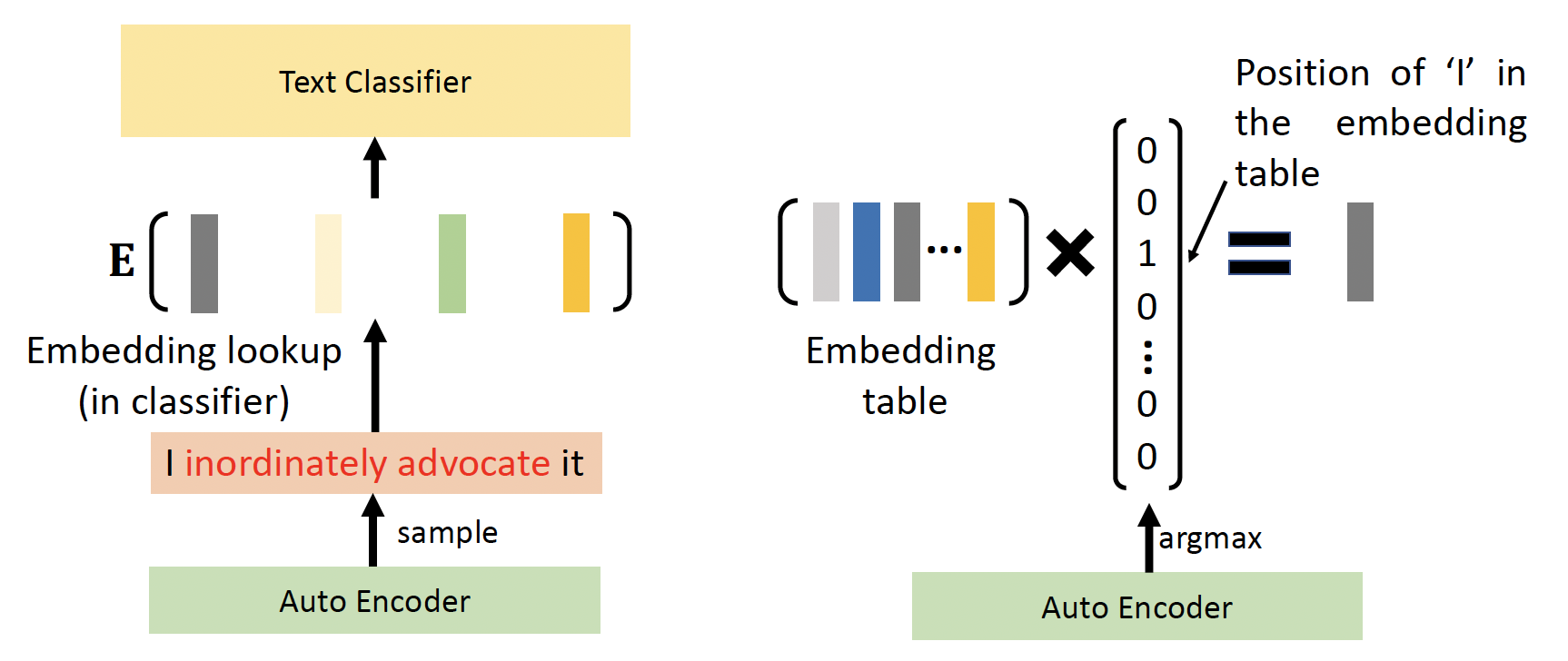 这样训练的一个问题是:回代时没法直接在自编码器中求出 \(\arg \max\) 的值,因为自编码器的输出不可微分