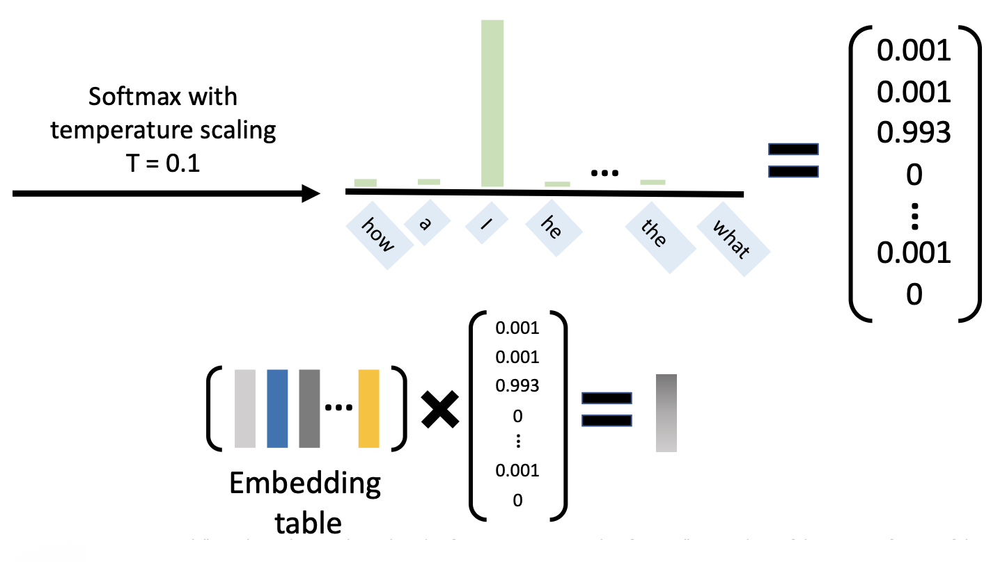 图中右下角 \(\arg \max\) 是通过带温度缩放的 softmax 求出来的:\(y_i = \dfrac{e^{G(i) / T}}{\sum_j e^{G(j) / T}}\),其中 \(T\) 越小,通过该方法得到的分布和采样得到的分布越接近(论文中 \(T = 0.1\))
