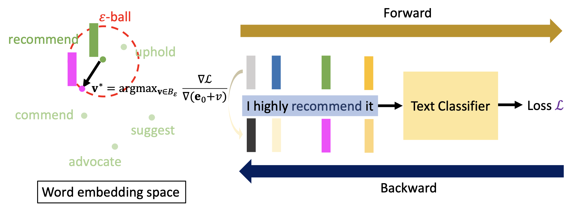 通过 \(\varepsilon\)-ball 在词嵌入空间中进行对抗训练
