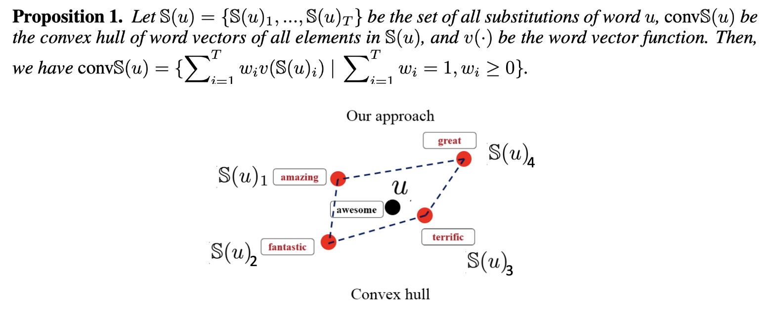 在凸包中寻找一个对抗嵌入向量等价于寻找线性组合的系数