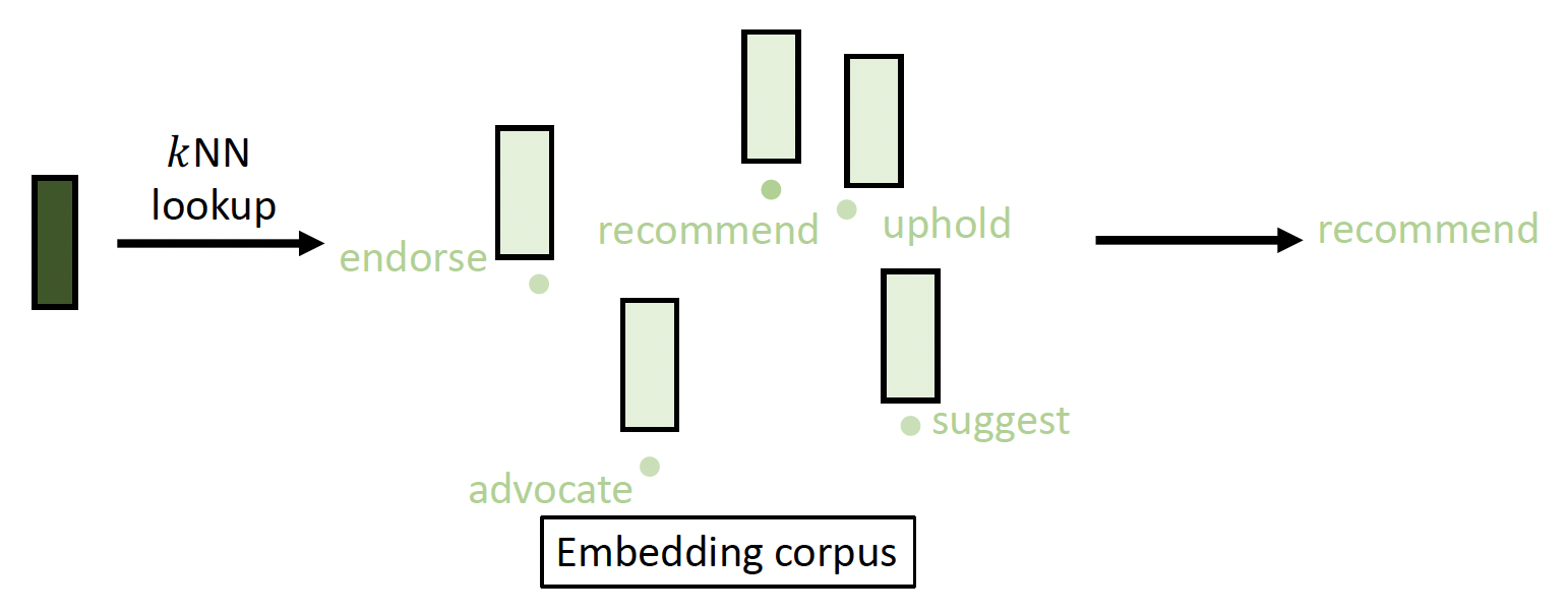 token 恢复:用评估得到的嵌入向量来寻找一个嵌入群 (embedding corpus),从而恢复被扰动的 token