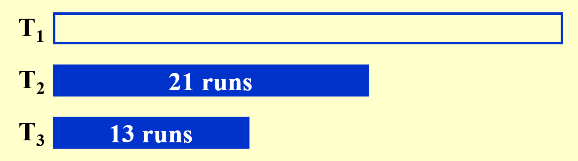 - 至少需要使用 3 个磁带(2 个子序列合并成 1 个更大的序列)