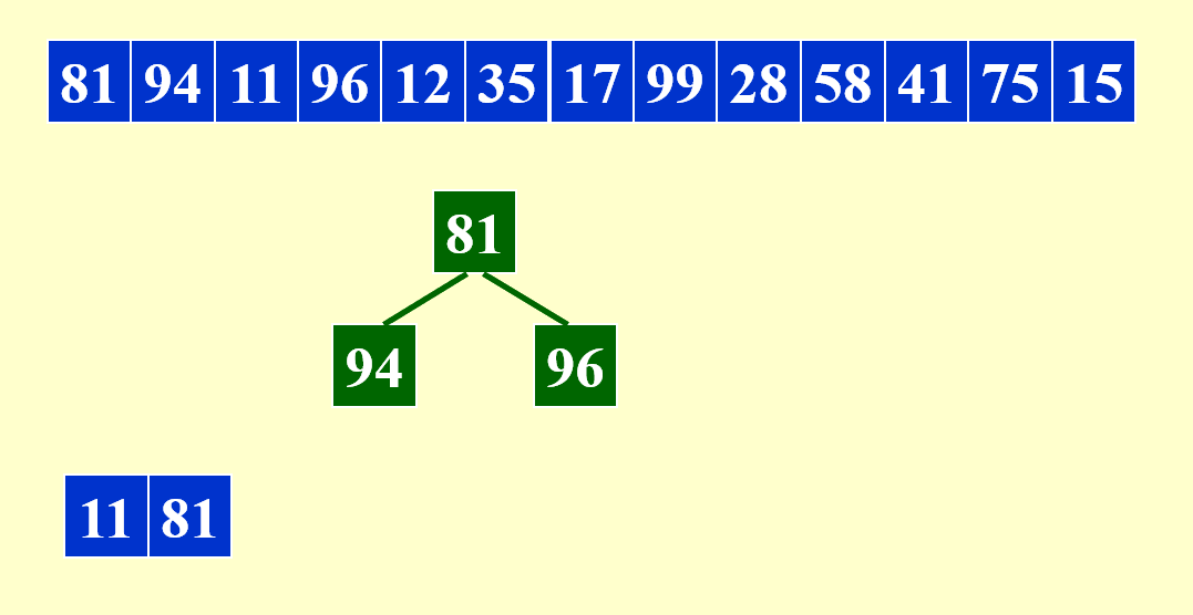 待排序的序列同上例。下面直接给出分析过程: