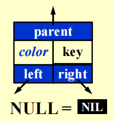 NULL一般会称为NIL,它代表的是一个外部节点,其颜色为黑色。规定:红黑树的孩子要么是实际存在的节点,要么是个空节点