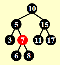 - 被删除节点有两个孩子 -> 用左子树最大节点或右子树最小节点的值替代被删除的节点的值(注意保持颜色不变