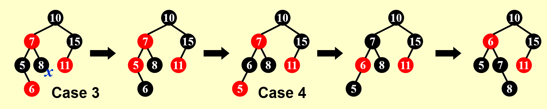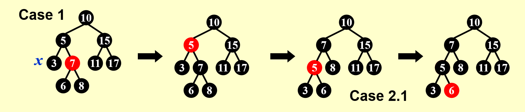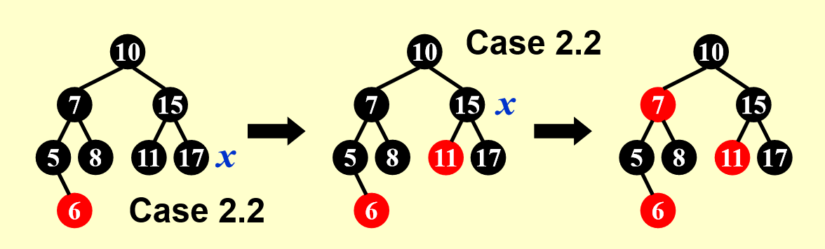 - 若孩子为红色 -> 该节点为黑色 -> 直接用孩子替代该节点并染黑即可