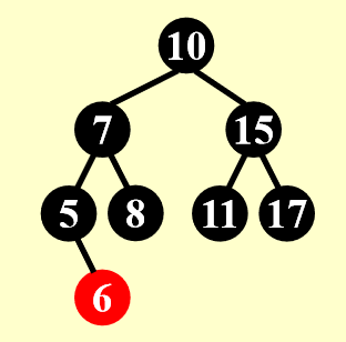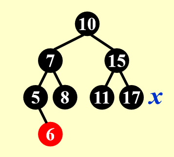 - Case 5:父节点是黑色的 -> 啥也不用动,因为没有与红黑树的性质冲突(其实前面例子刚开始的时候就已展示过这种情况了)