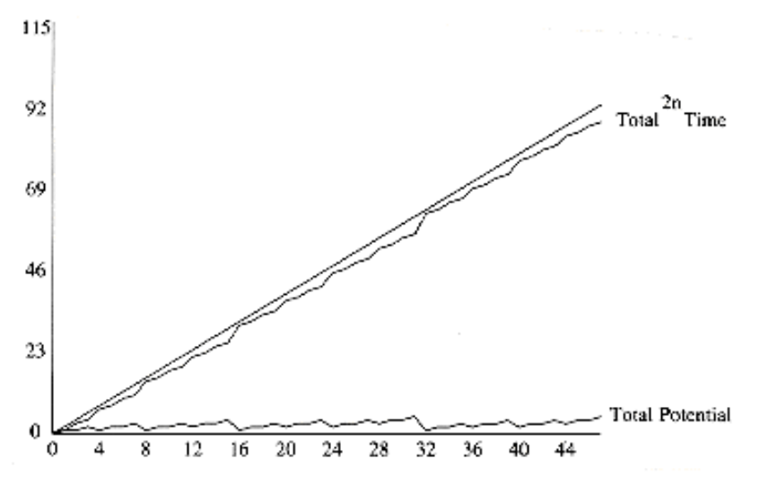 尽管最坏情况下插入的时间复杂度 \(T_{\text{worst}} = O(\log N)\),但摊还时间复杂度 \(T_{\text{amortized}} = 2\)