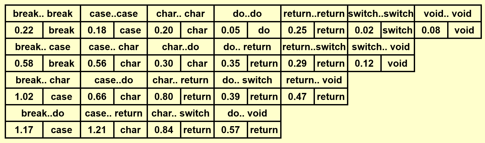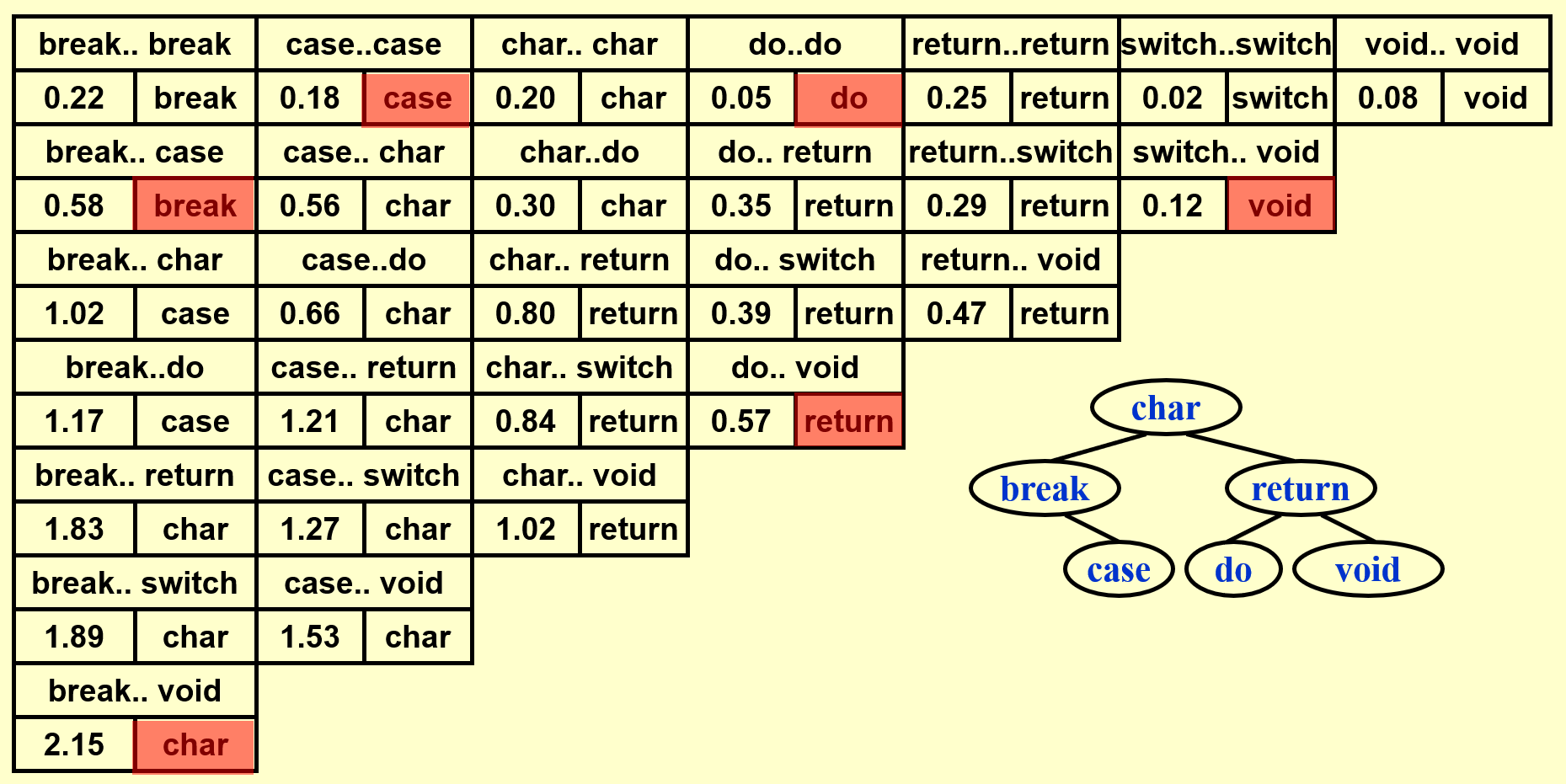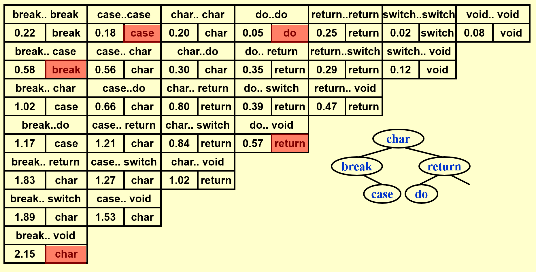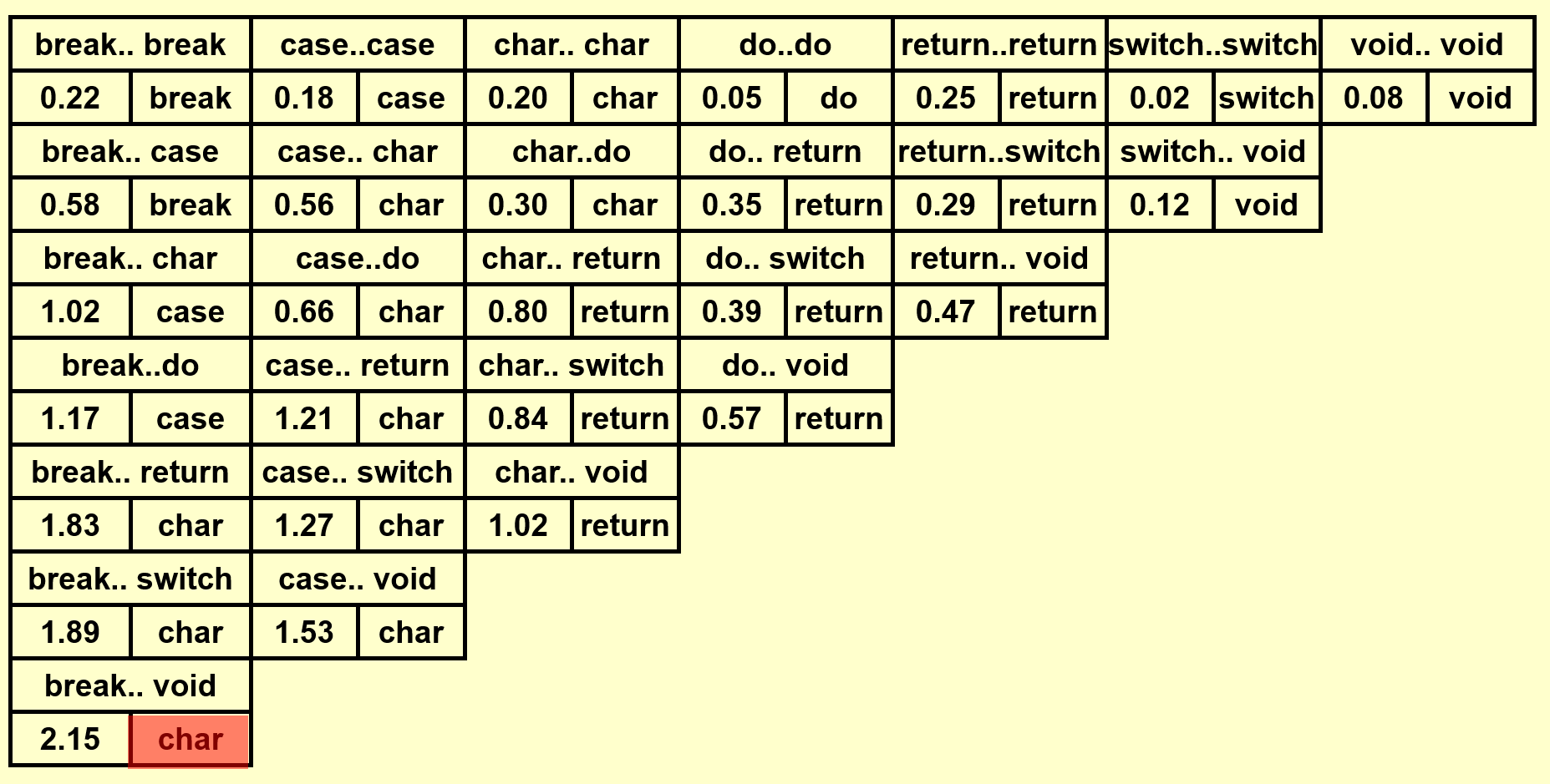 - 在计算过程中,我们保存了一张形如下三角矩阵的表: