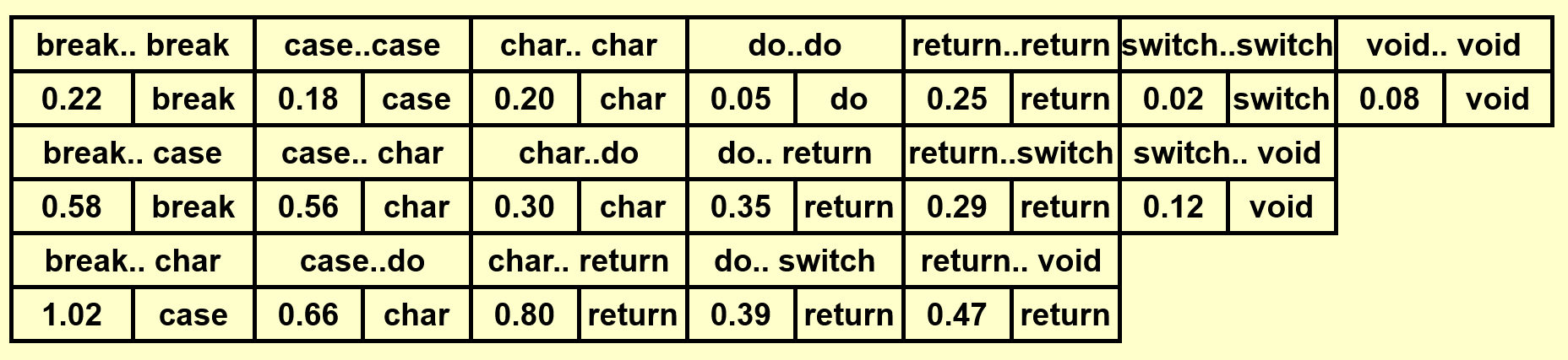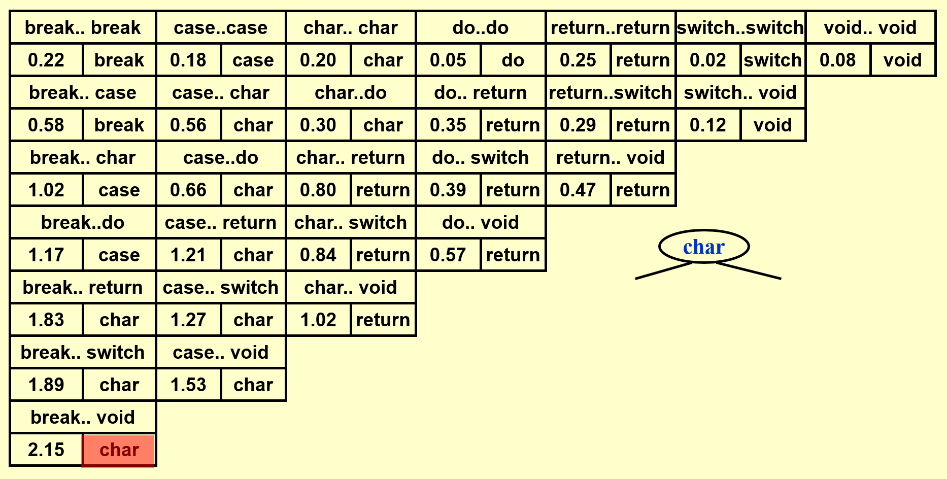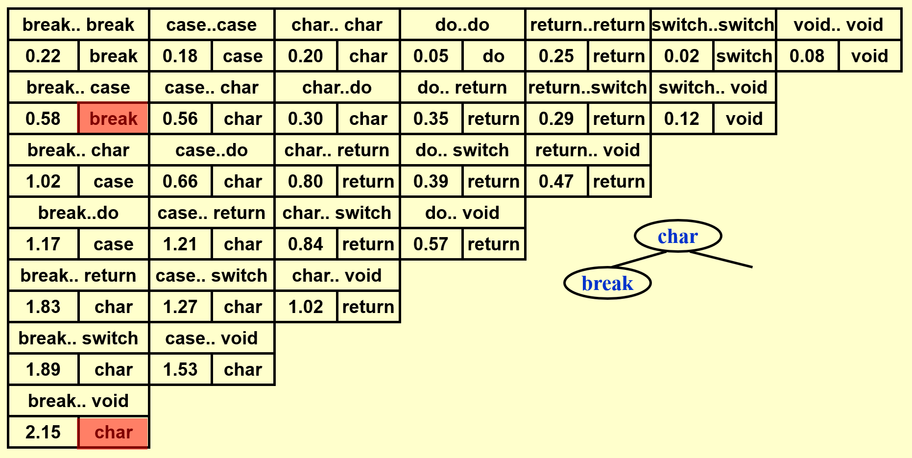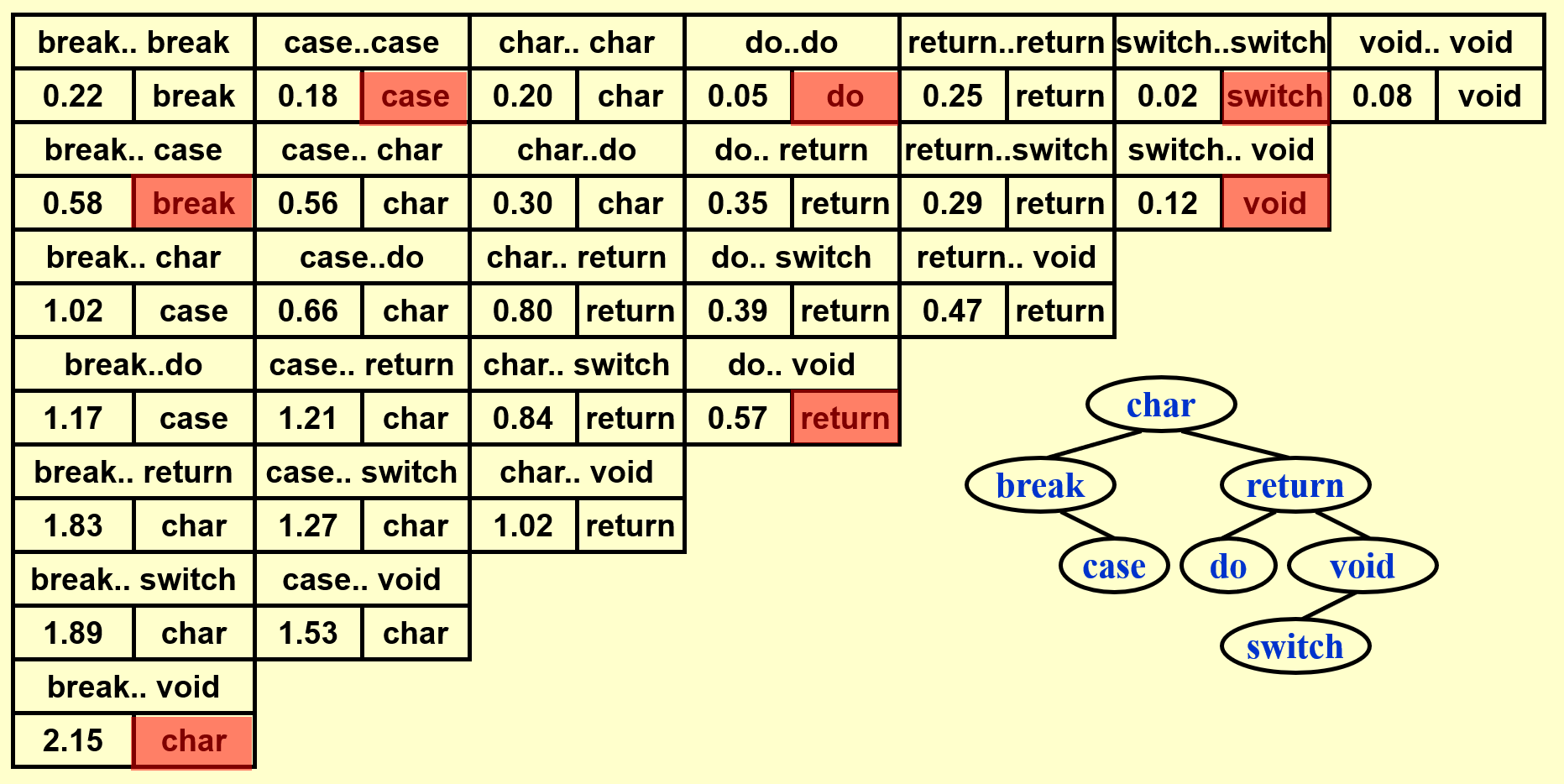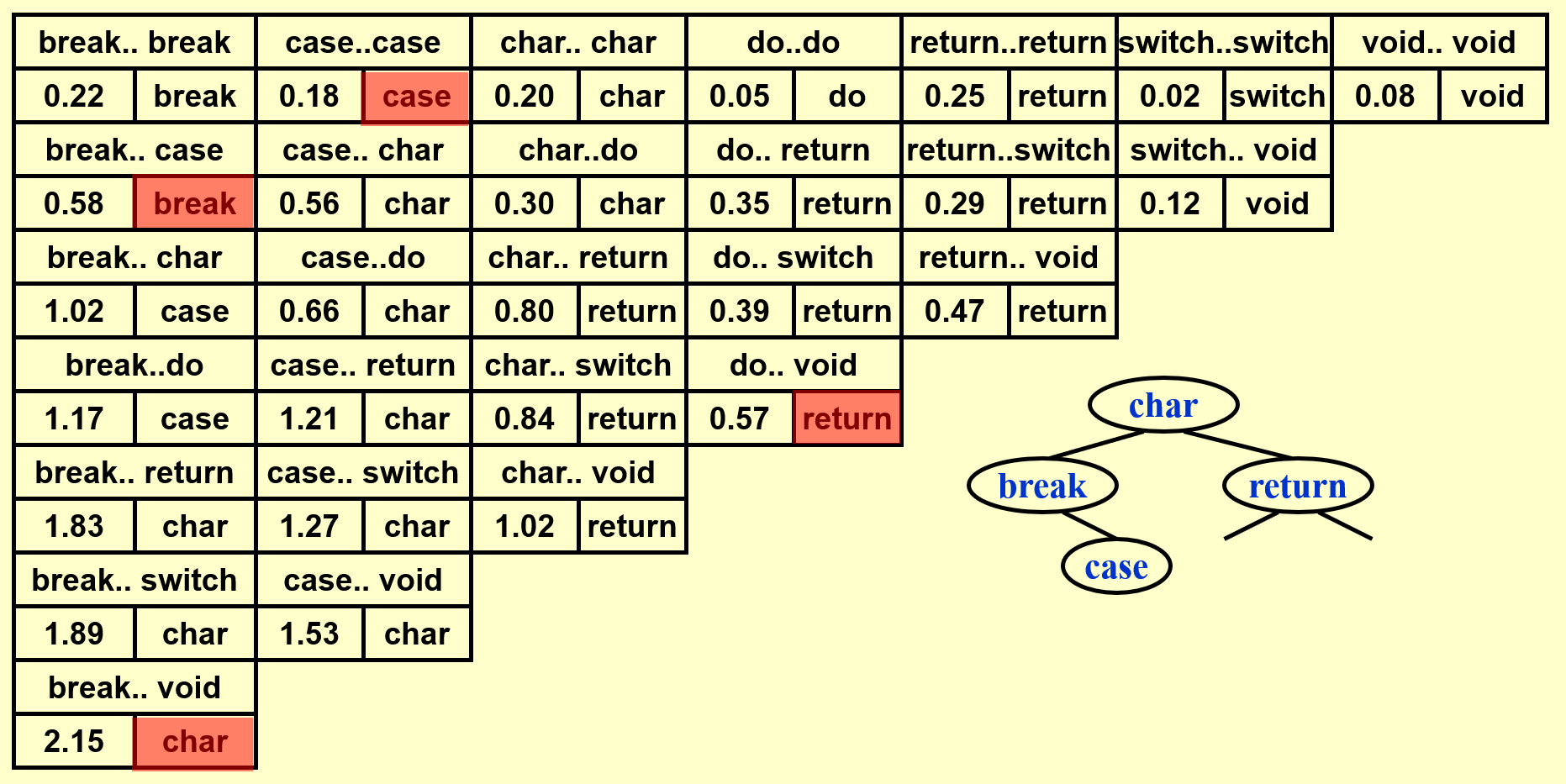 - 在计算过程中,我们保存了一张形如下三角矩阵的表: