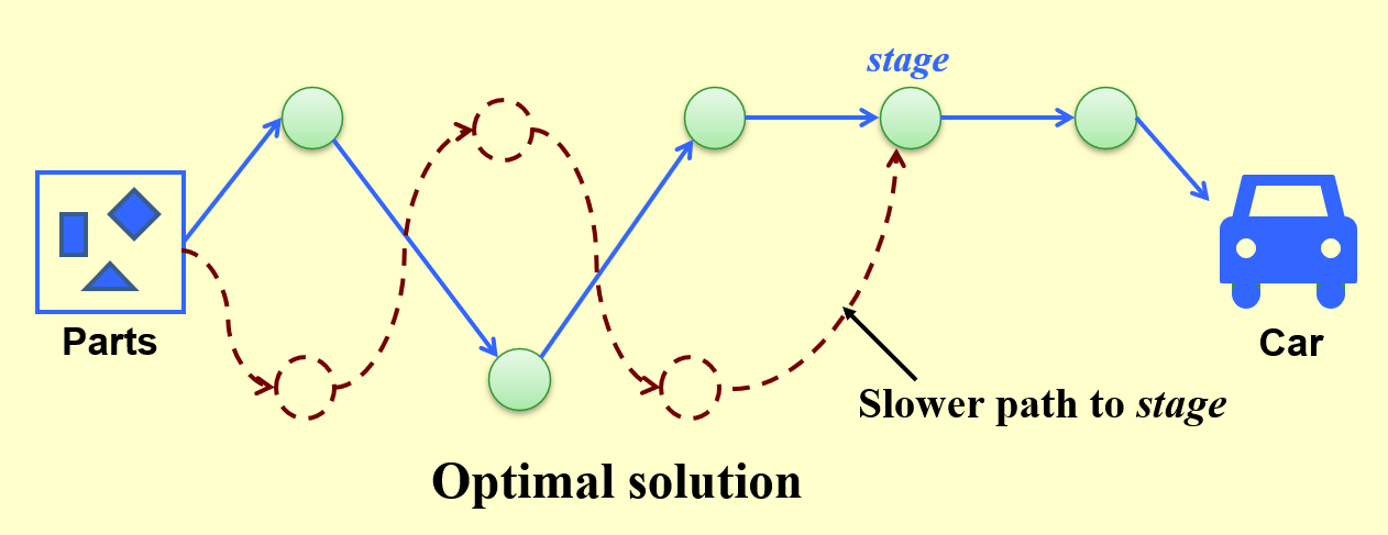 - 红色虚线表示虽然有一条同样能在stage阶段到达同一个点的路径,但这条路径所花的时间更长,因此被 pass 掉了