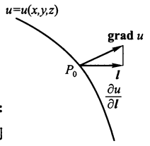 易知 \(|\mathbf{grad}\ u(P_0)| = \left.\sqrt{(\dfrac{\partial u}{\partial x})^2 + (\dfrac{\partial u}{\partial y})^2 + (\dfrac{\partial u}{\partial z})^2}\right|_{P_0}\)