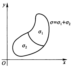 • \(\sigma\) 可分解为 2 个不共内点的区域 \(\sigma_1, \sigma_2\),记作 \(\sigma = \sigma_1 + \sigma_2\),则有: